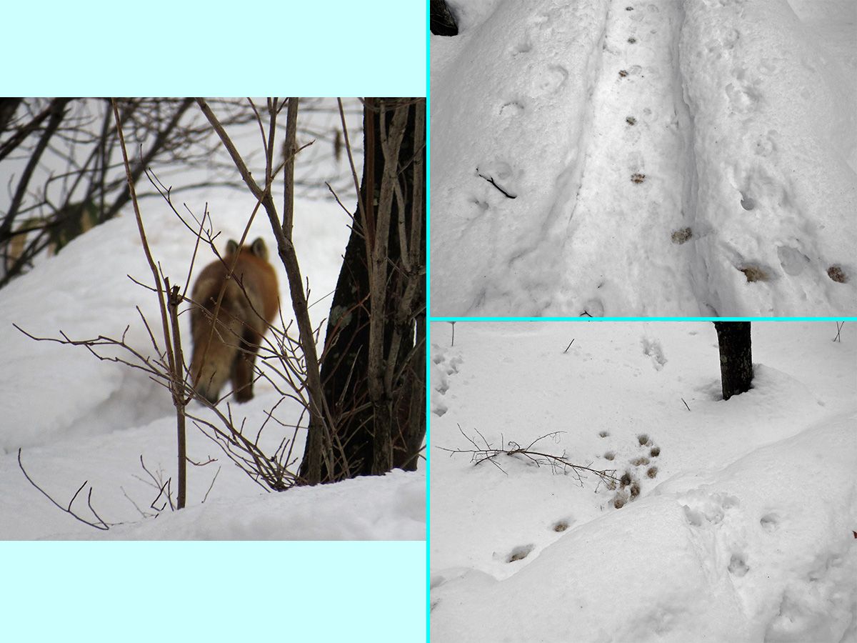 写真6は、遊歩道から分岐してついているキタキツネの足跡です。