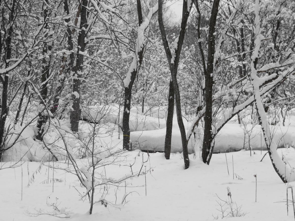 自宅を出発した時点では降雪はありませんでしたが、公園に到着したときに激しい降雪が始まりました。(写真7〜9)