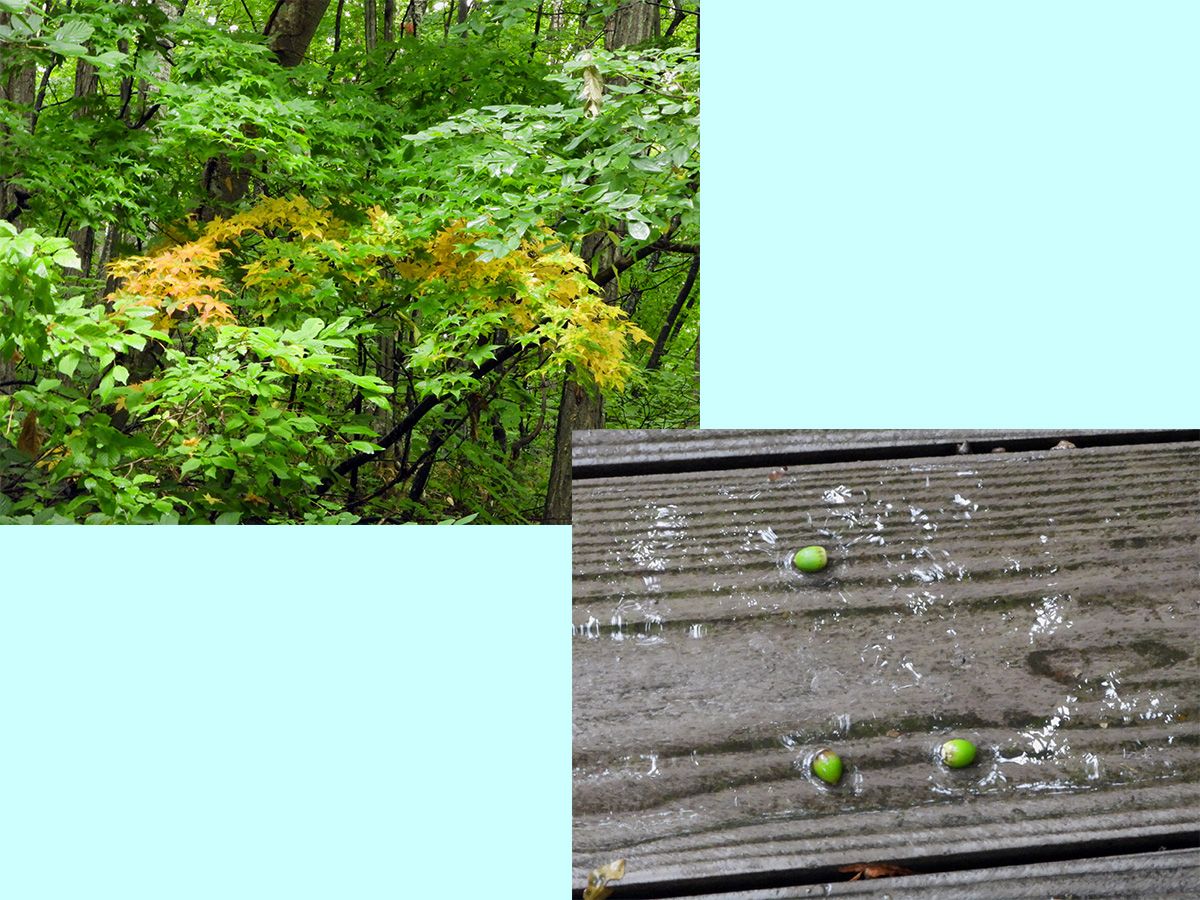 公園内の紅葉は、部分的に始まっている所もありますが、全体的には緑の葉の勢いが無くなってきた段階です。