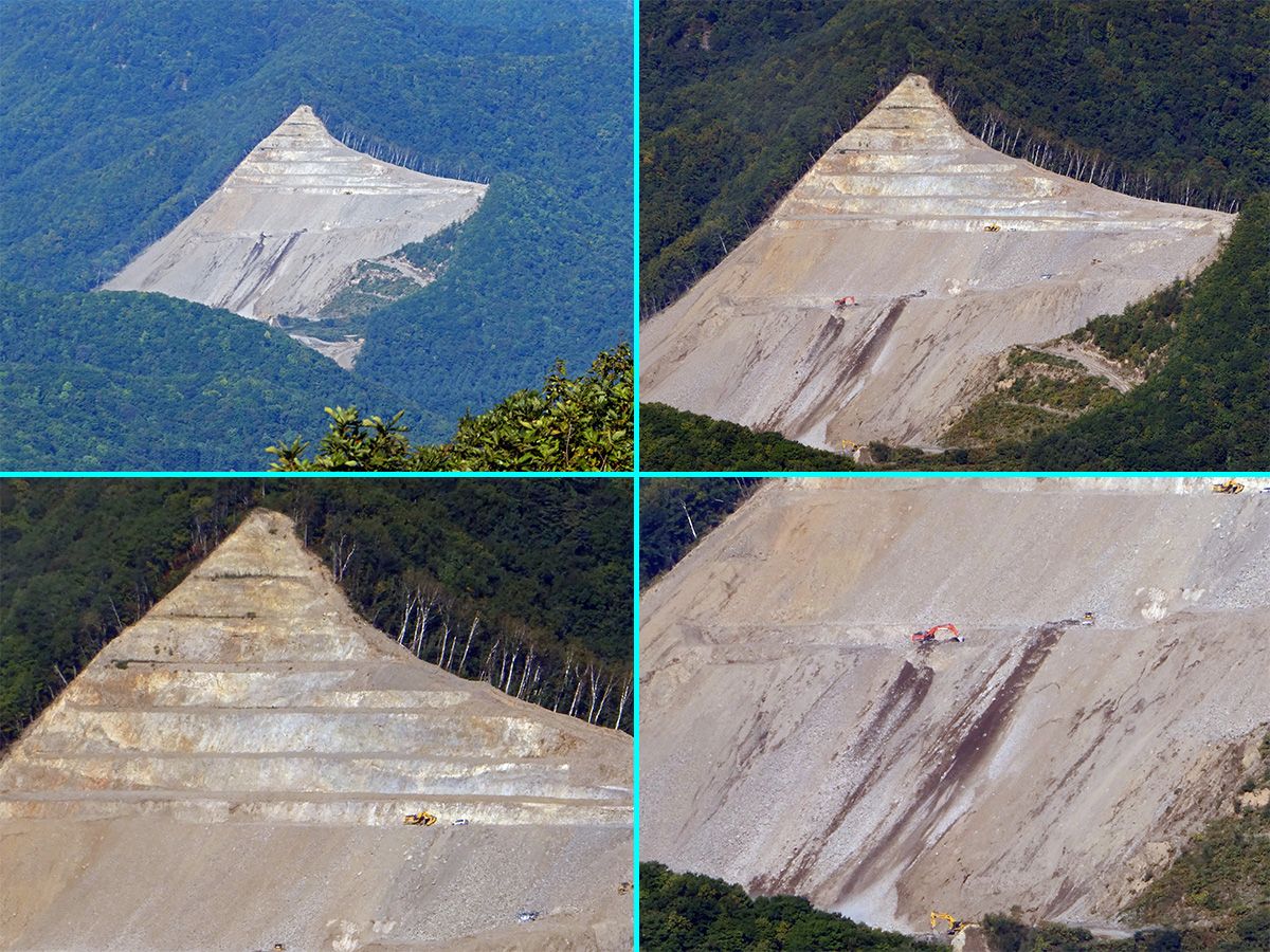 今回は、登山道入口から少し入った場所までしか確認していませんが、古い木道が撤去されて、太い枕木状の木材が敷かれていました。