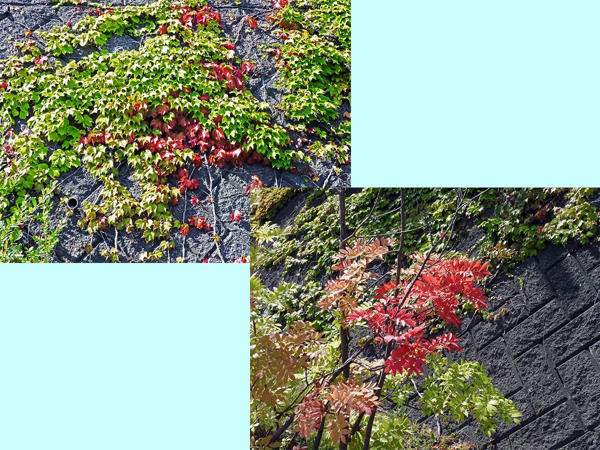 第一駐車場の石垣のツタ類が紅葉して、見頃を迎えました。
