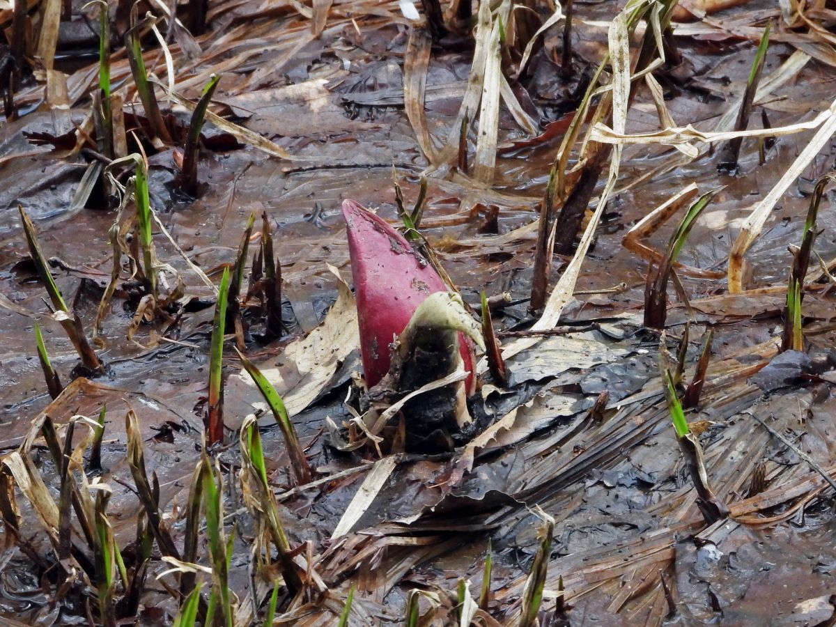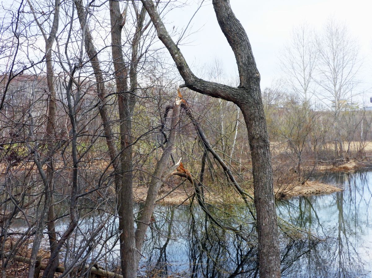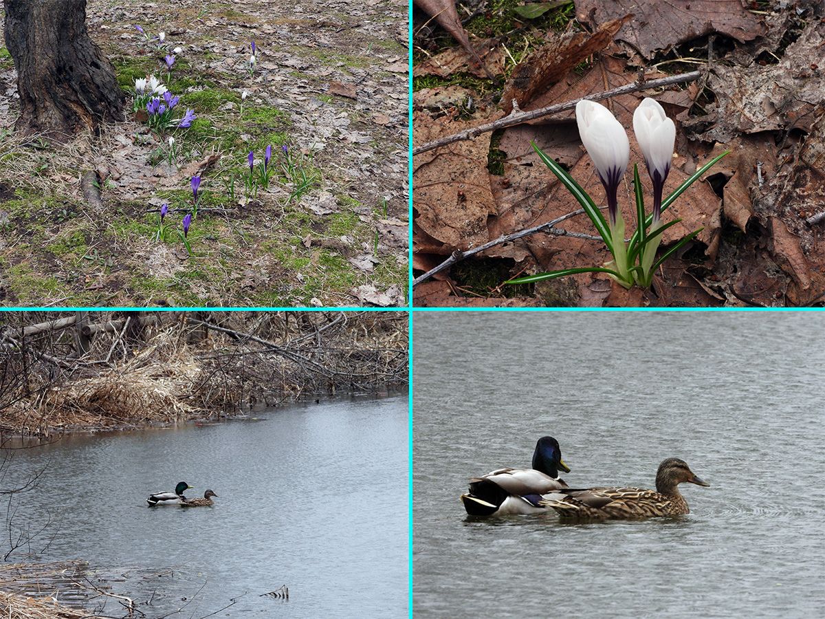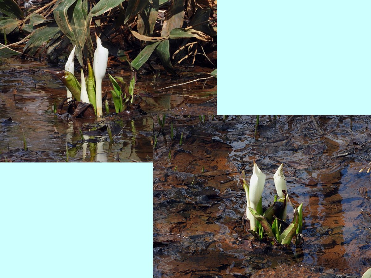 人工池の中島はまだ枯れ草に覆われていて、緑色はまだ見られません。