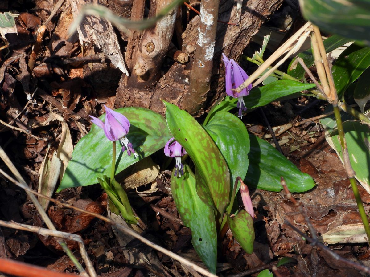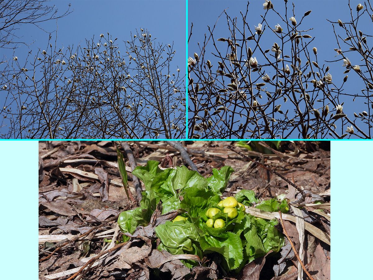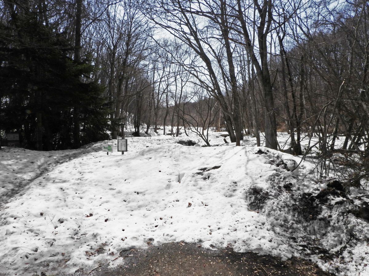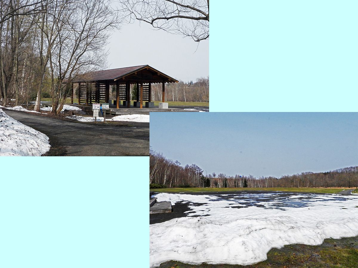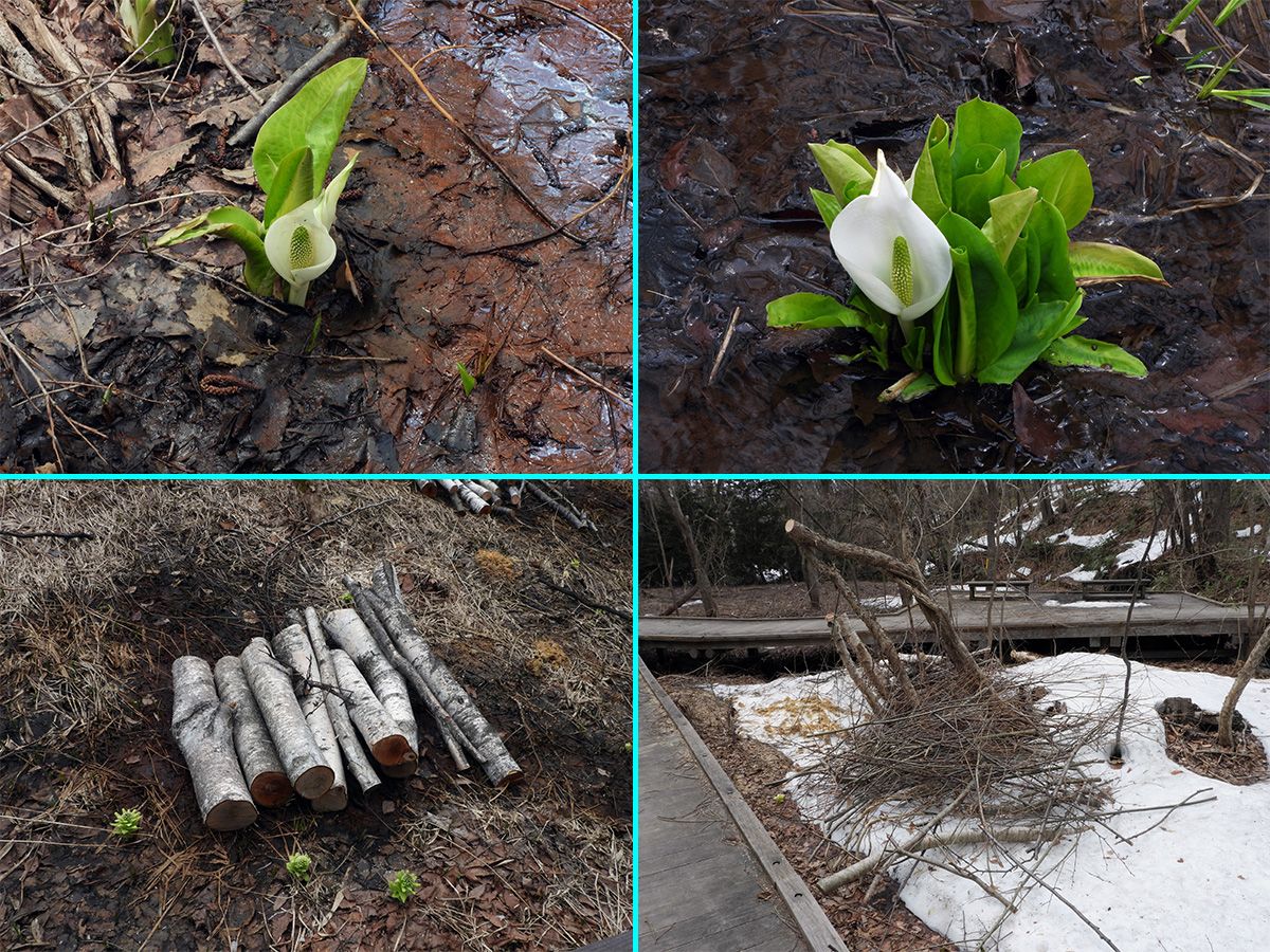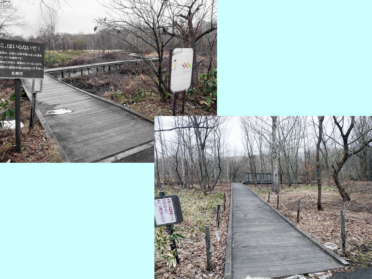 ただし、林のなかの木々は、梢部分が薄らと緑色になってきた程度で、湿原の木々とは葉の生長が大幅に遅れています。