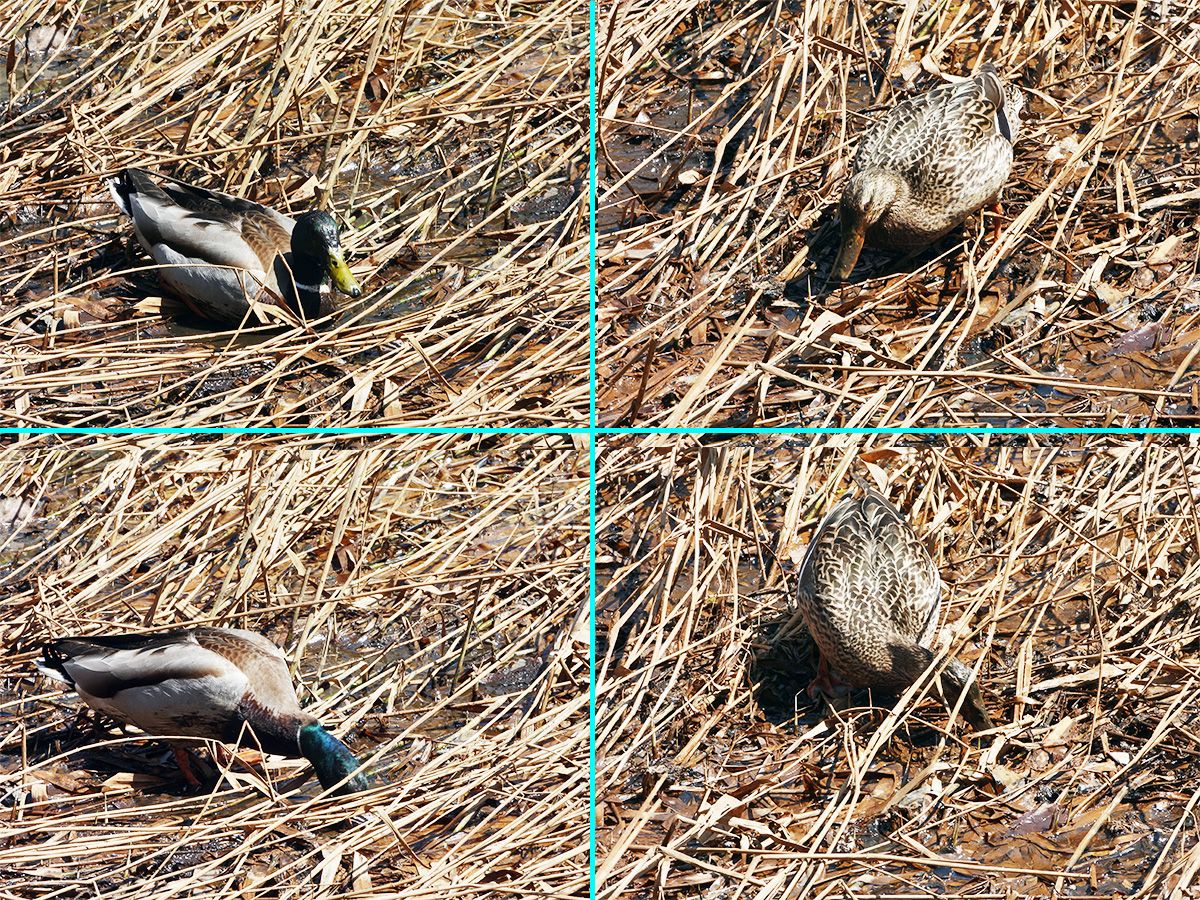 第1駐車場下の湿原にもマガモのつがいが採餌をして
