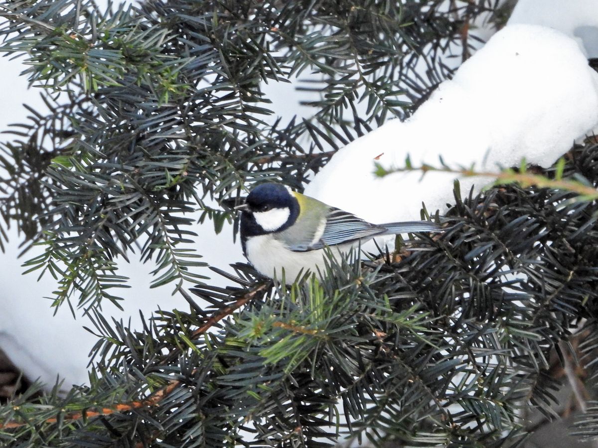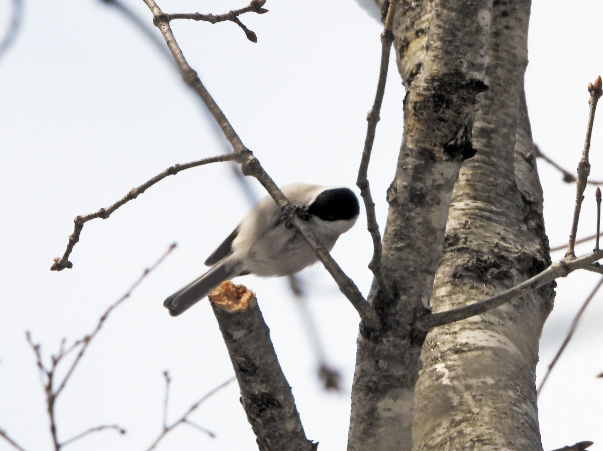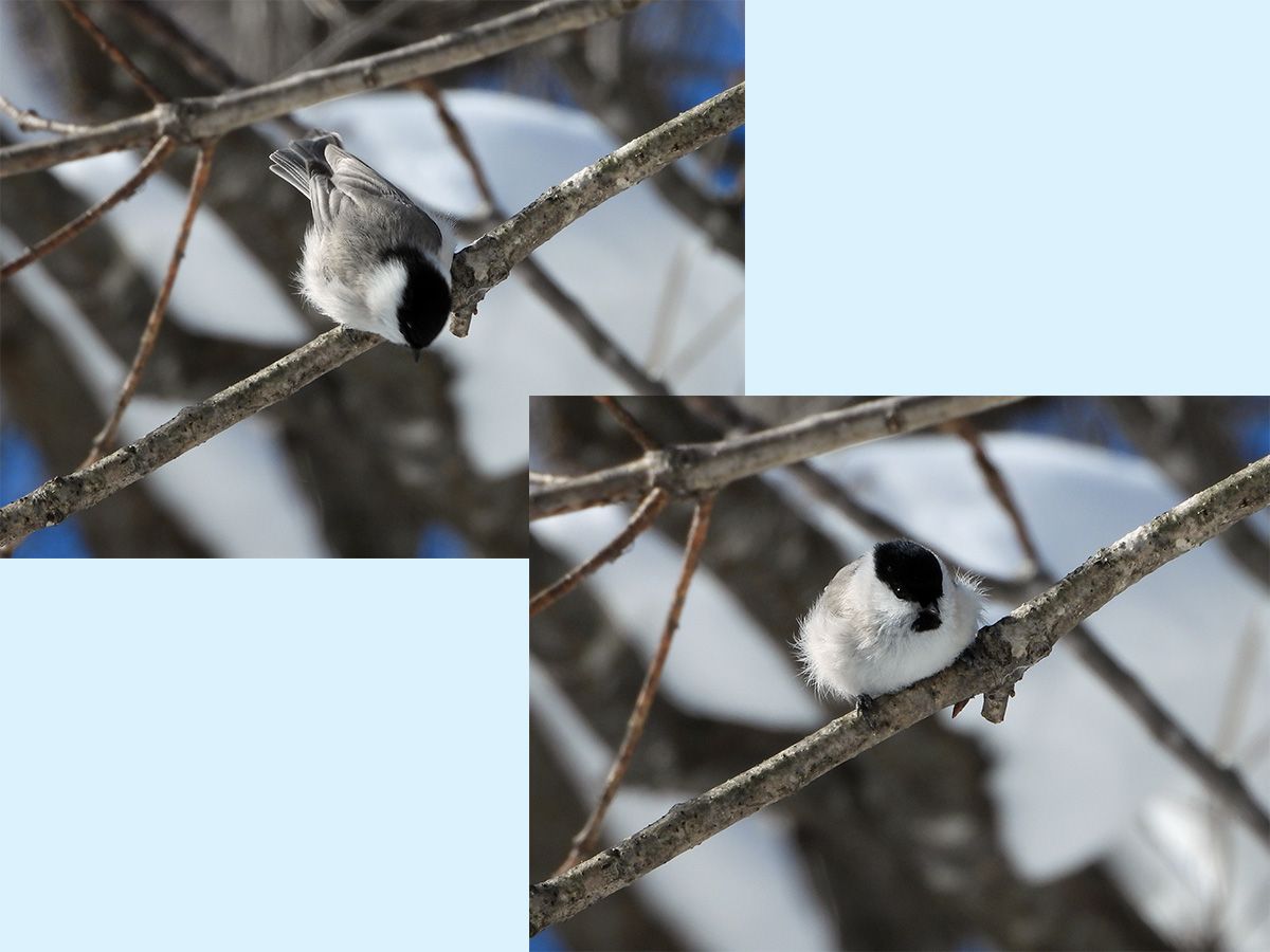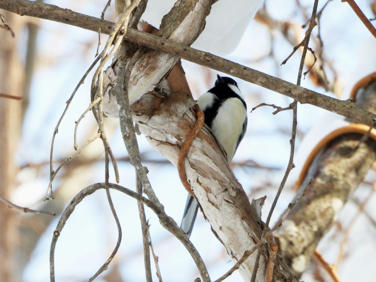 野鳥の数はあいかわらず少ないですが、シジュウカラが1羽のみ採餌をしていて、モデルをつとめてくれました。(写真1)