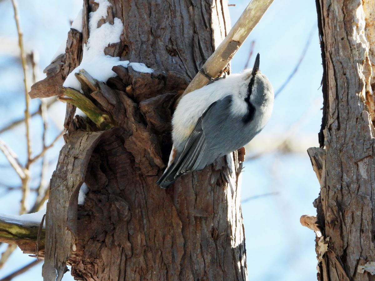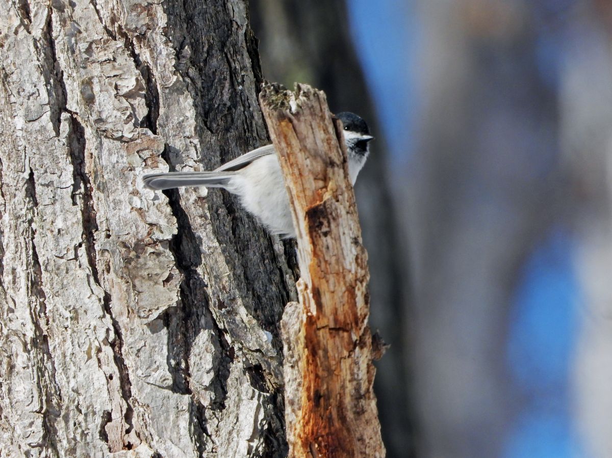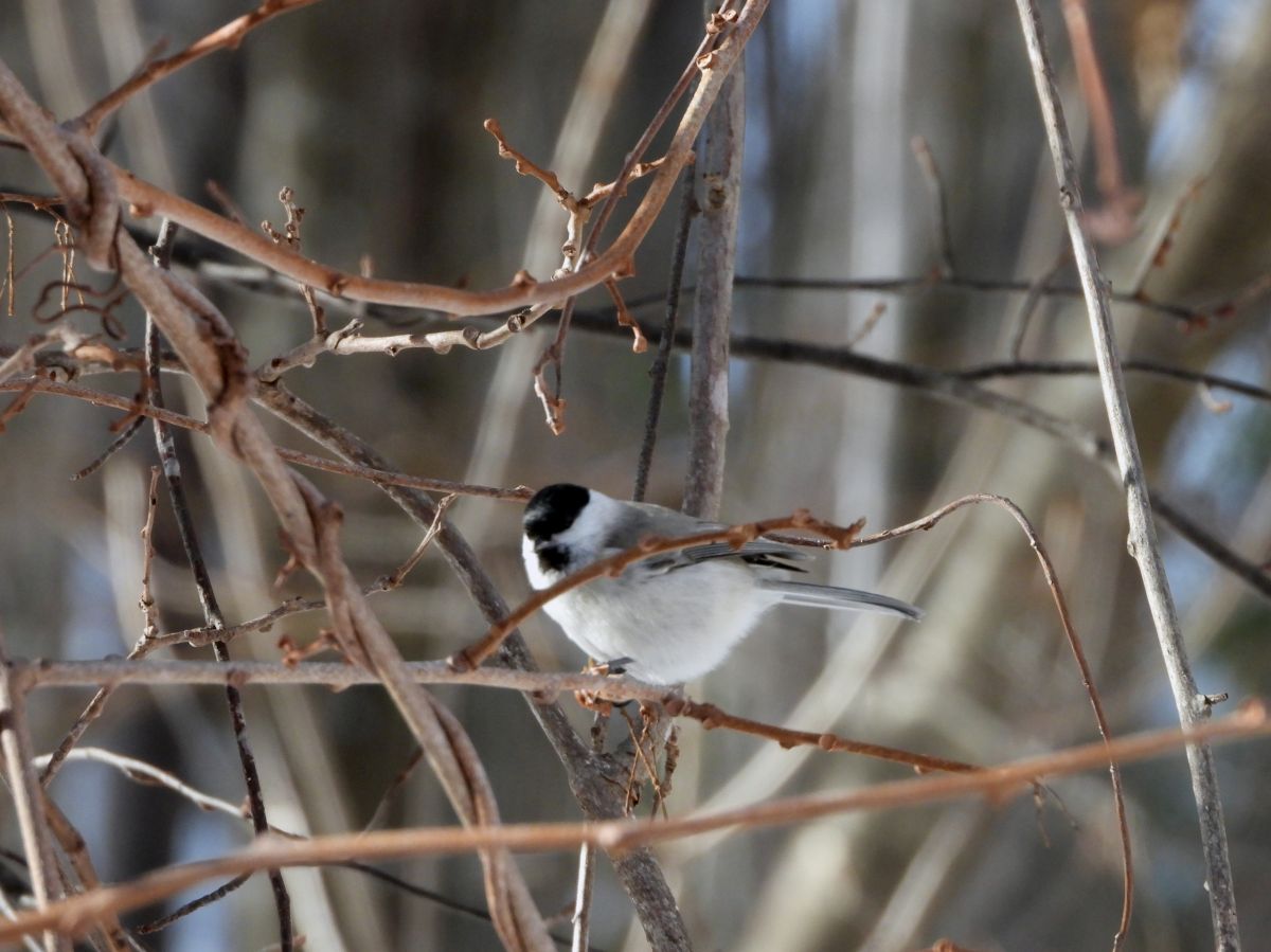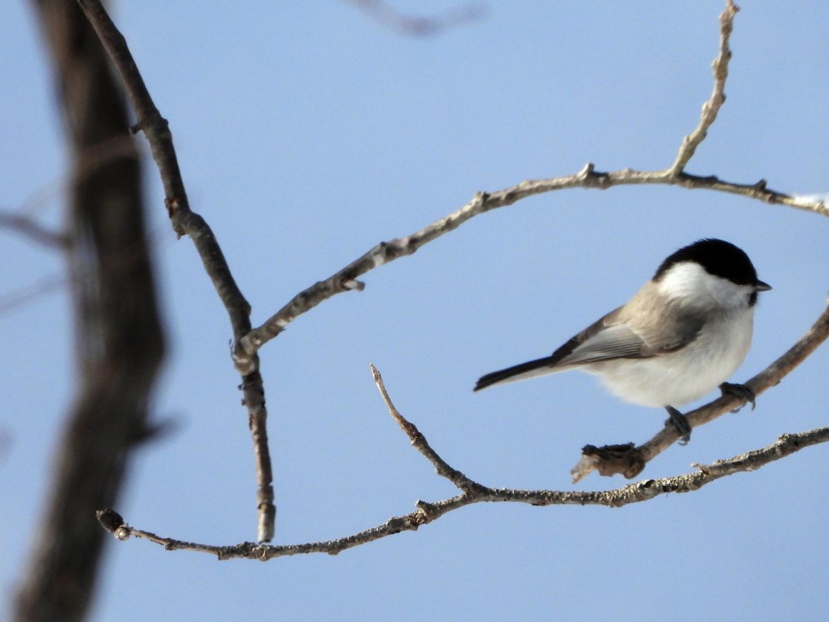 野鳥の数はあいかわらず少ないですが、シジュウカラが1羽のみ採餌をしていて、モデルをつとめてくれました。(写真1)