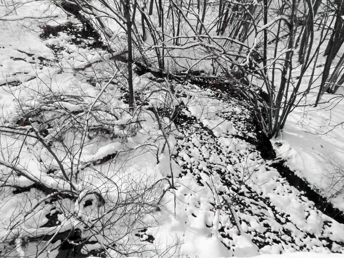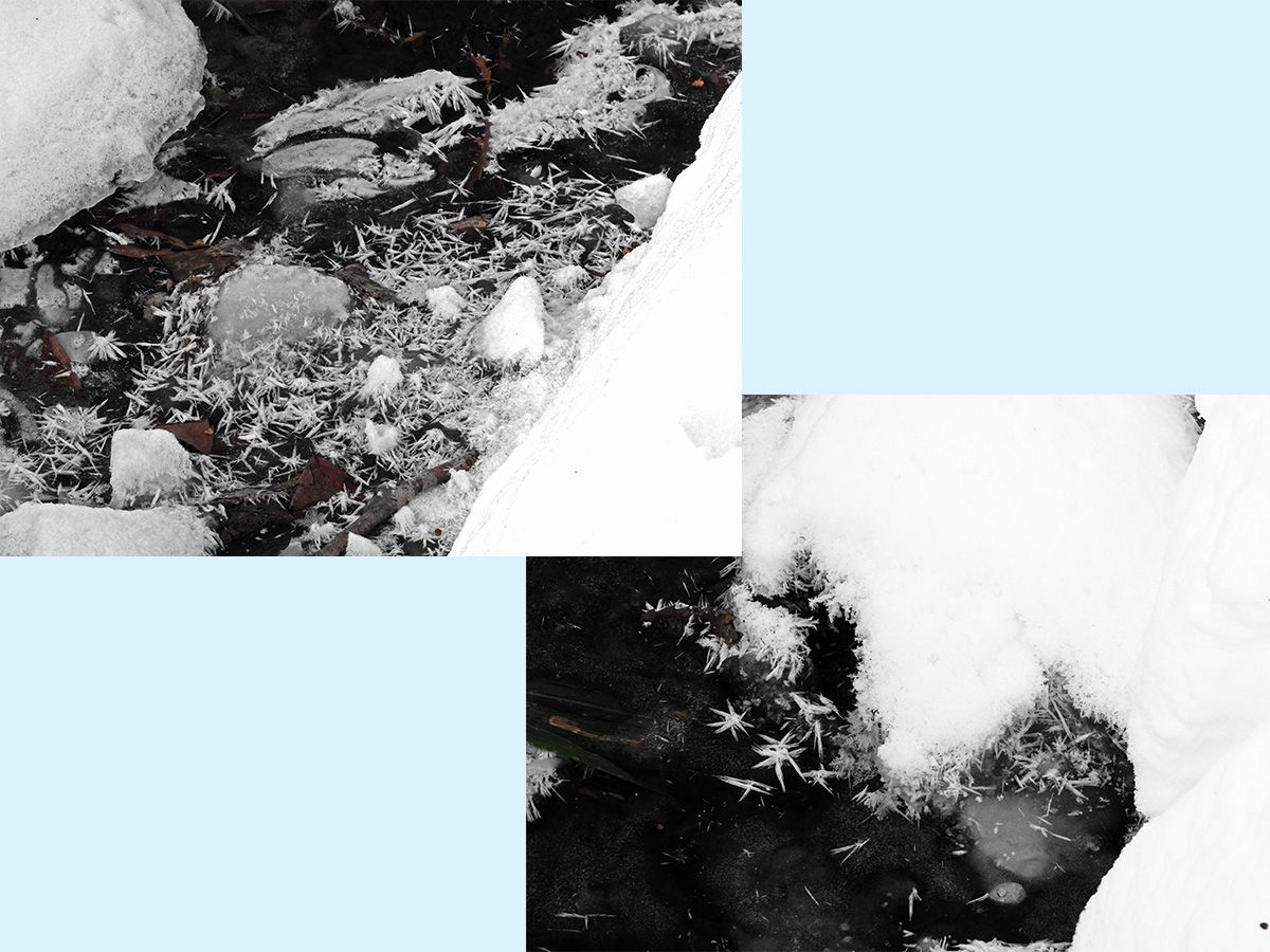 普段、水の流れている場所ですが、窓ガラスに見られるような針状の結晶ができていました。