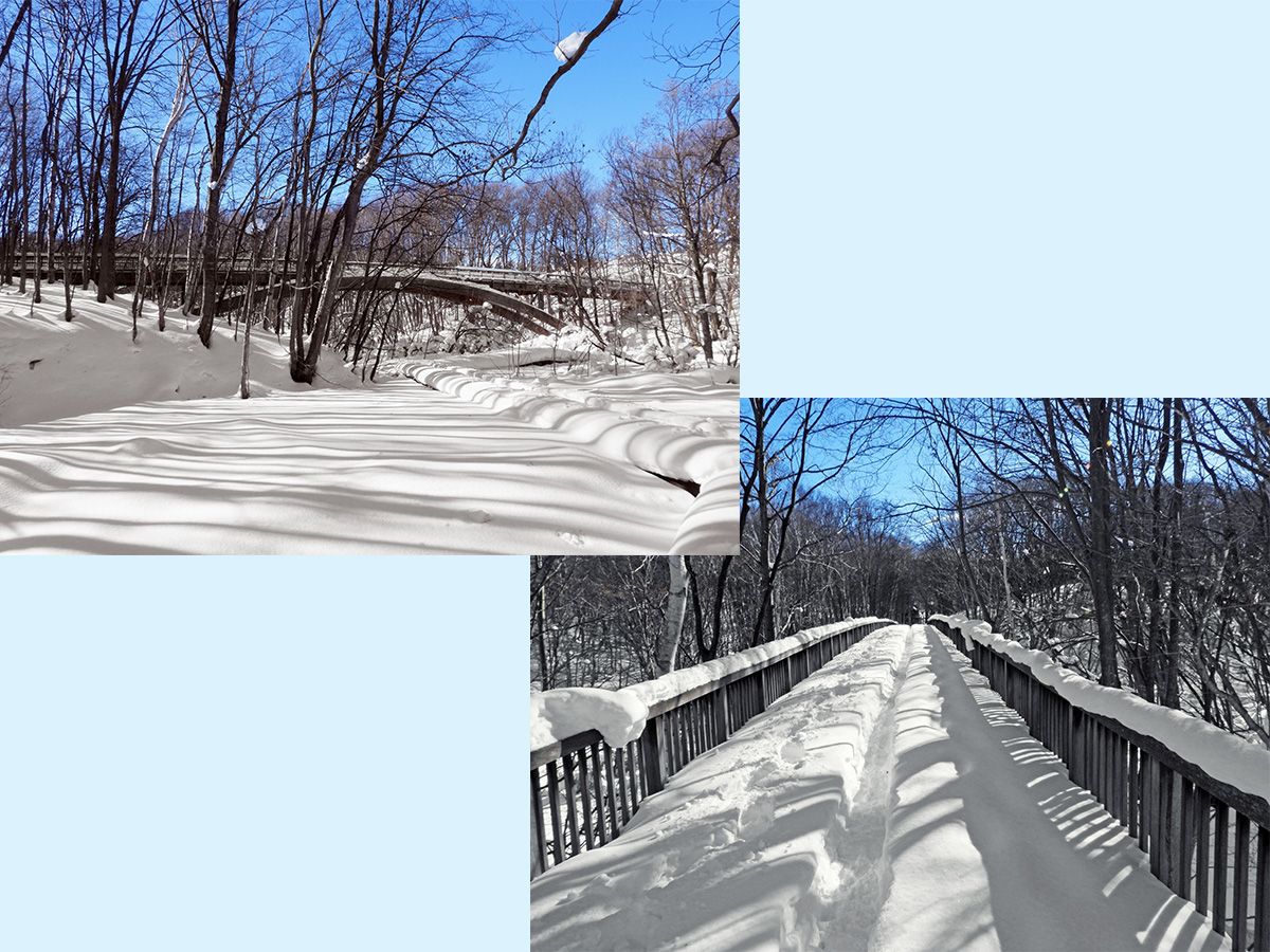 歩く距離は長くなりますが、舗装道路部分は機械除雪が行われるので、楽に歩行ができます。