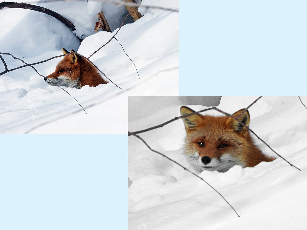 写真では雪に埋まっているように見えますが、起伏のある斜面で日光浴をしていたのかもしれません。