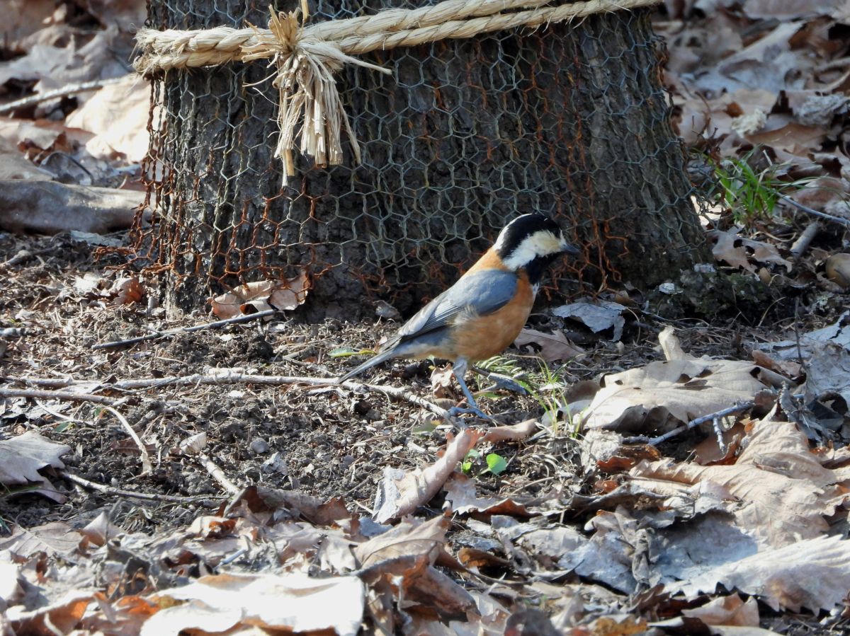 小さな群れで公園内を巡回している感じで、短時間だけ斜面の梅林で採餌を行い、すぐに飛び立って暫くしてまた訪れるという感じでした。