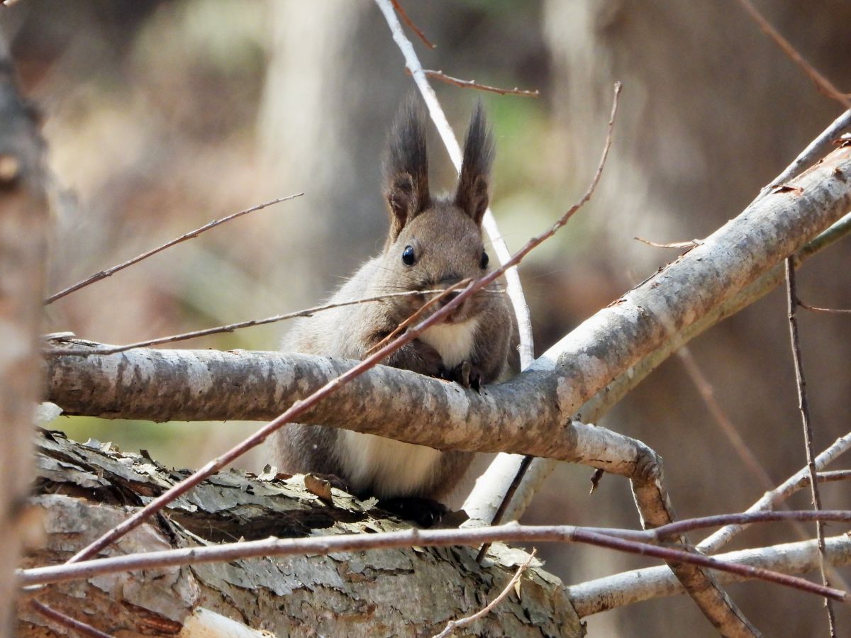 エゾリスを撮影しましたが、撮影条件が悪かったので、綺麗な写真にはなりませんでした。(写真5)