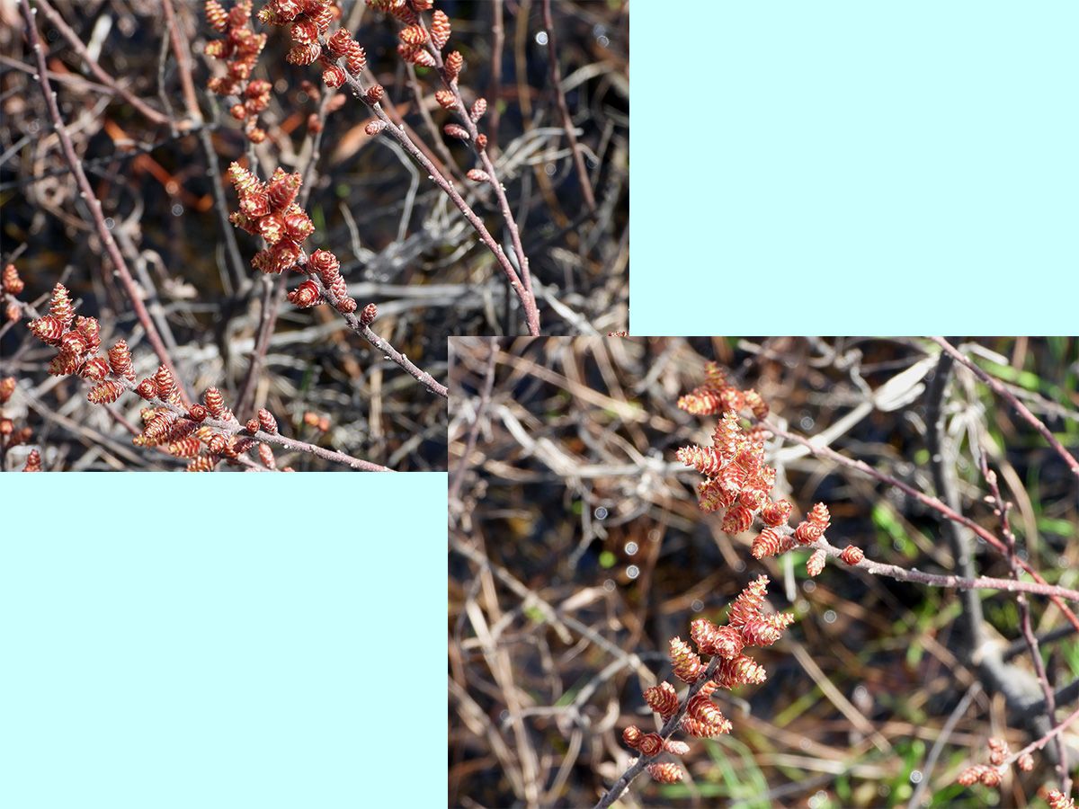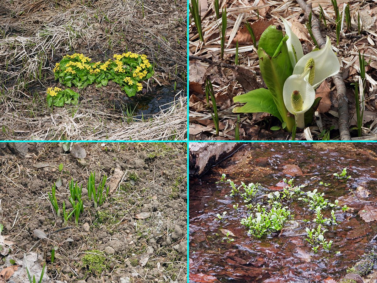 人工池では草が少し生えてきた程度で、中島はまだ枯れ草の状態です。