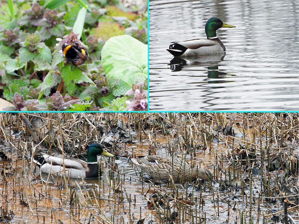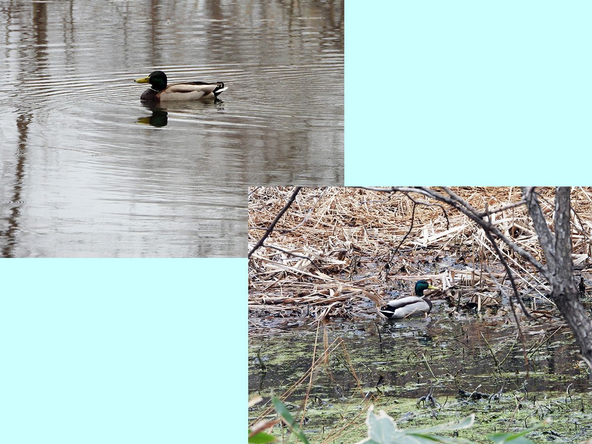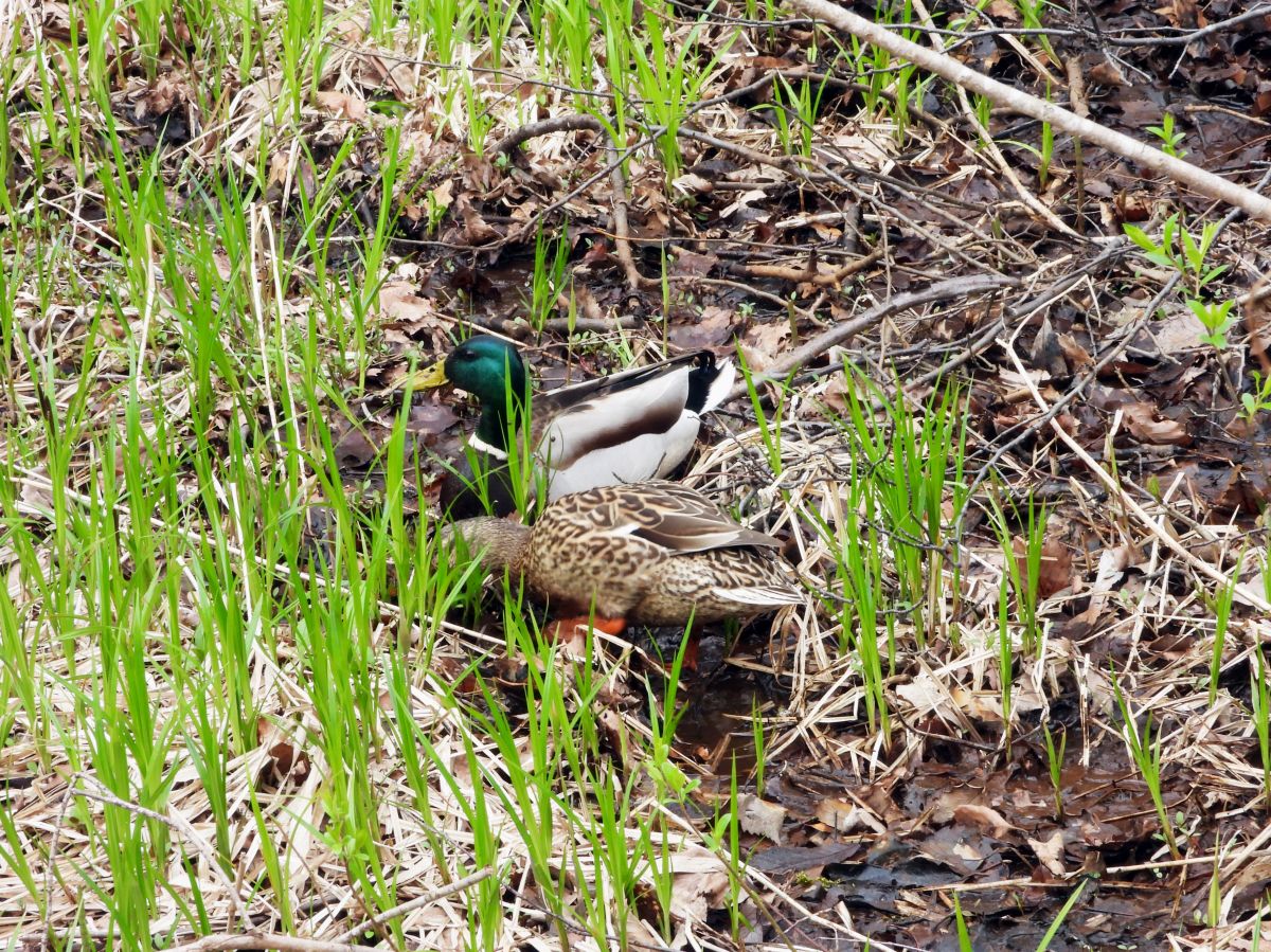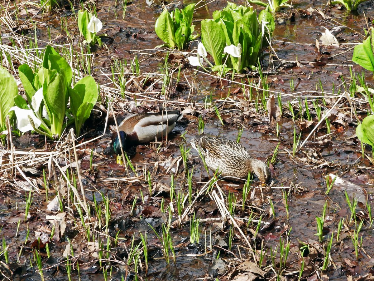 マガモのつがいが、第一駐車場下の湿原で採餌をしていました。(写真4)