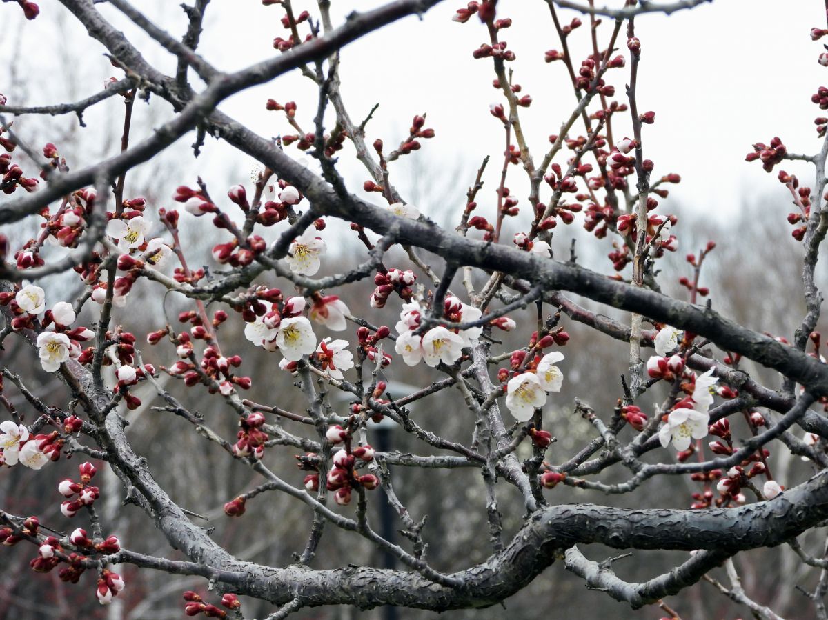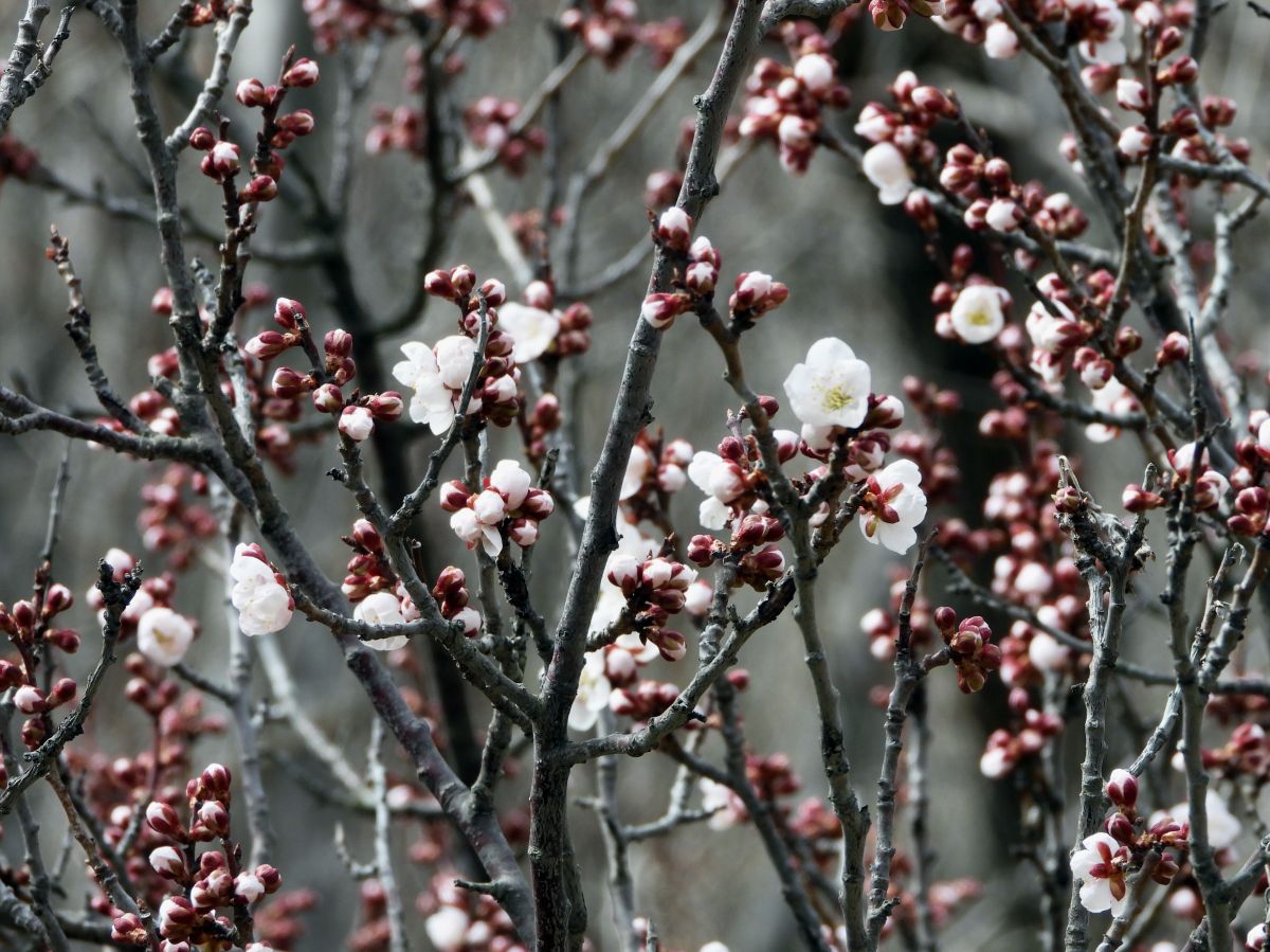 梅は、陽当たりの良い場所ではほぼ満開になりました。