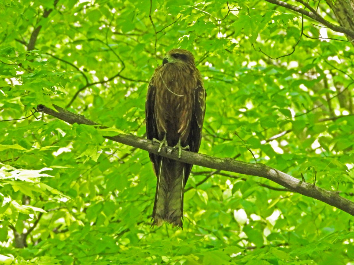 その後、林の中の遊歩道で、トビを撮影しました。(写真8,9)