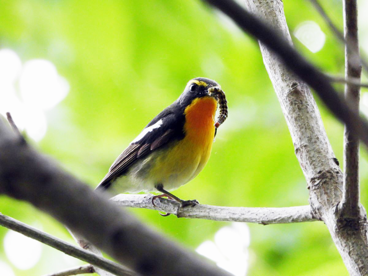 写真8のキビタキは、餌をくわえているので、子育て中なのかもしれません。