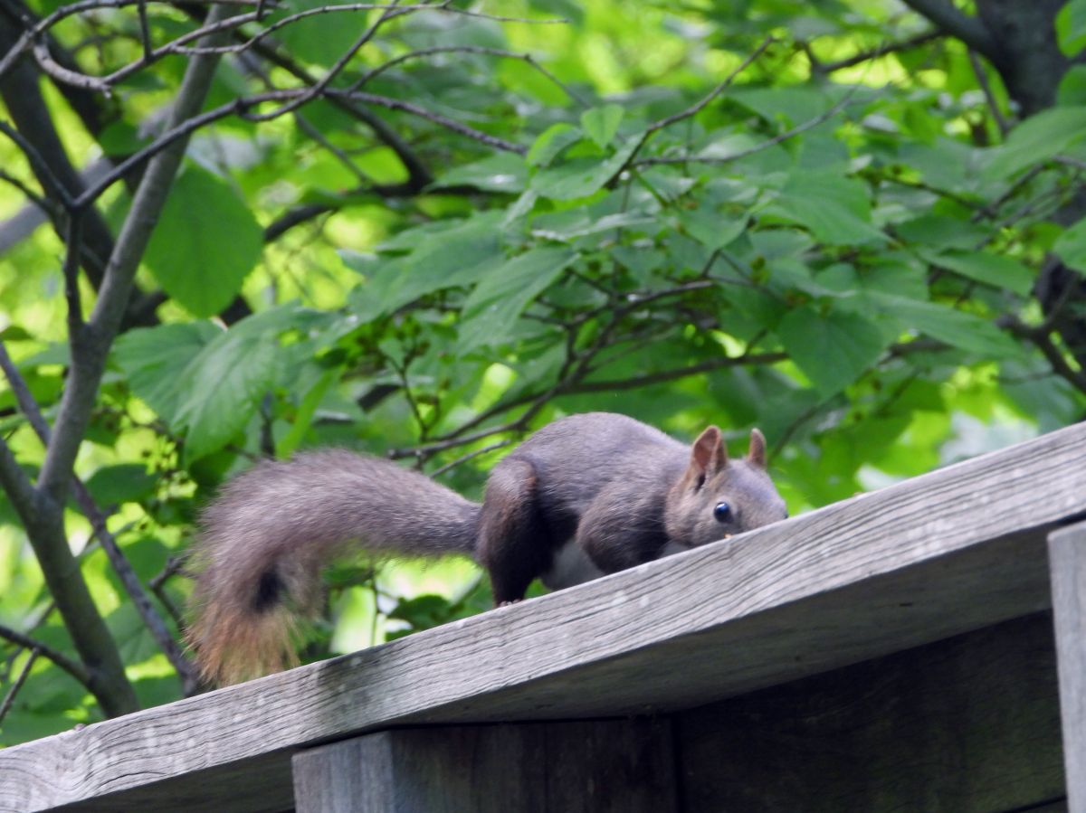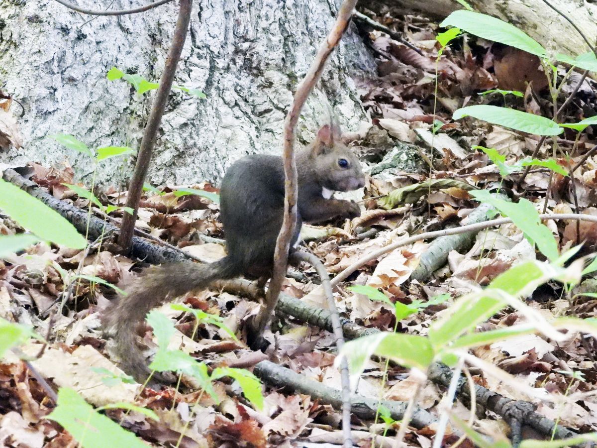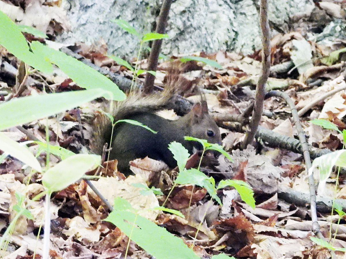 林の中の遊歩道で、エゾリスを撮影しました。(写真6〜9)。