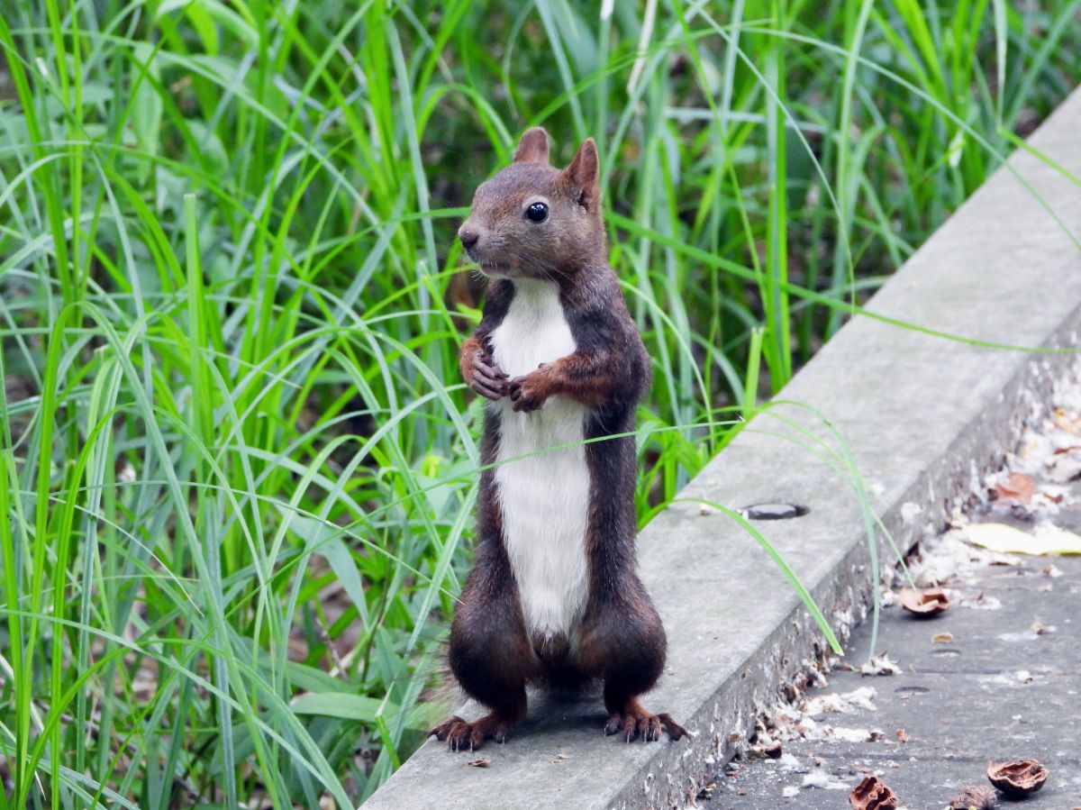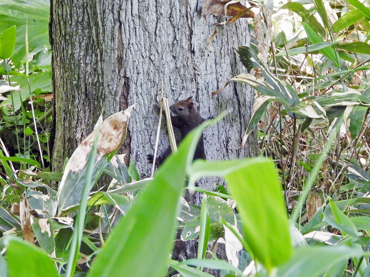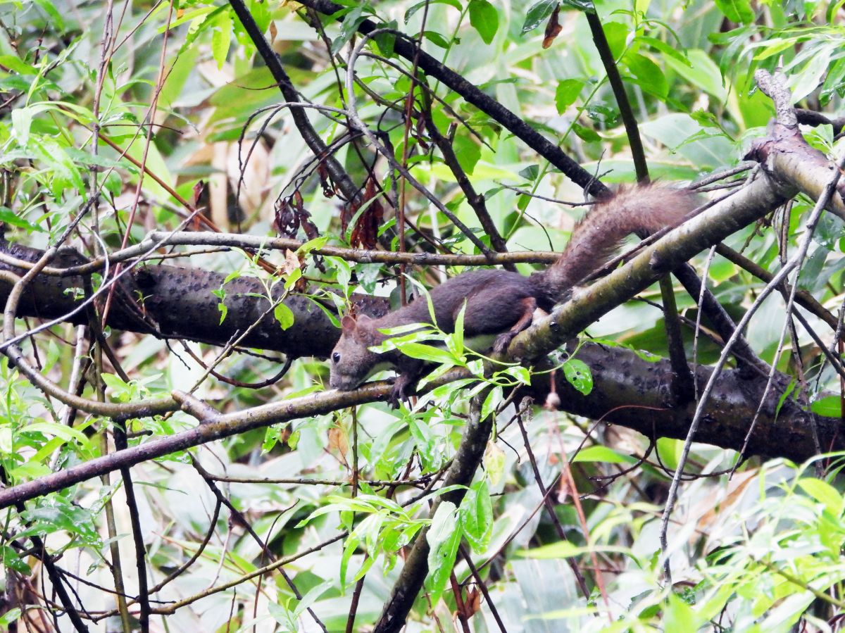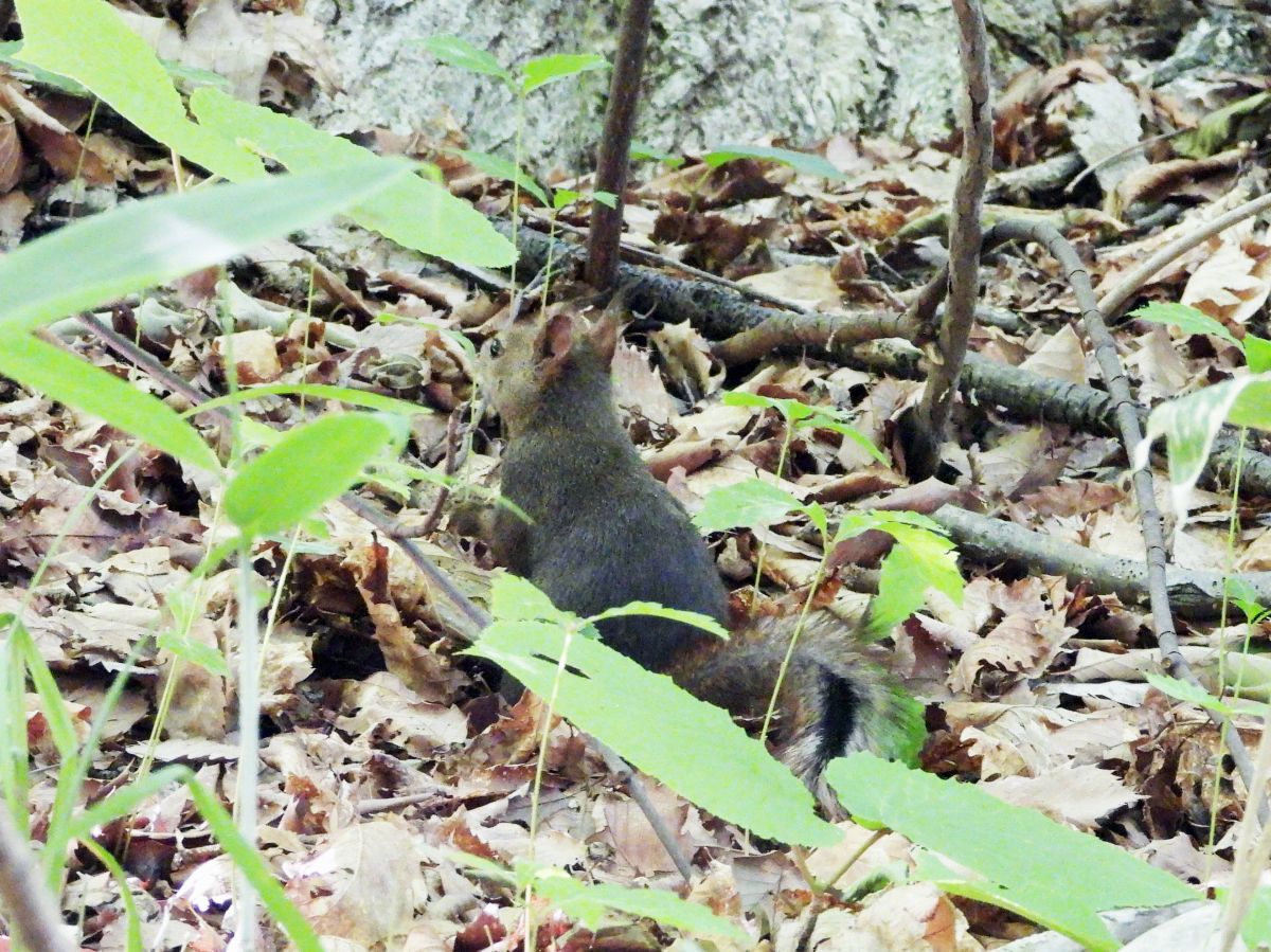 林の中の遊歩道で、エゾリスを撮影しました。(写真6〜9)。
