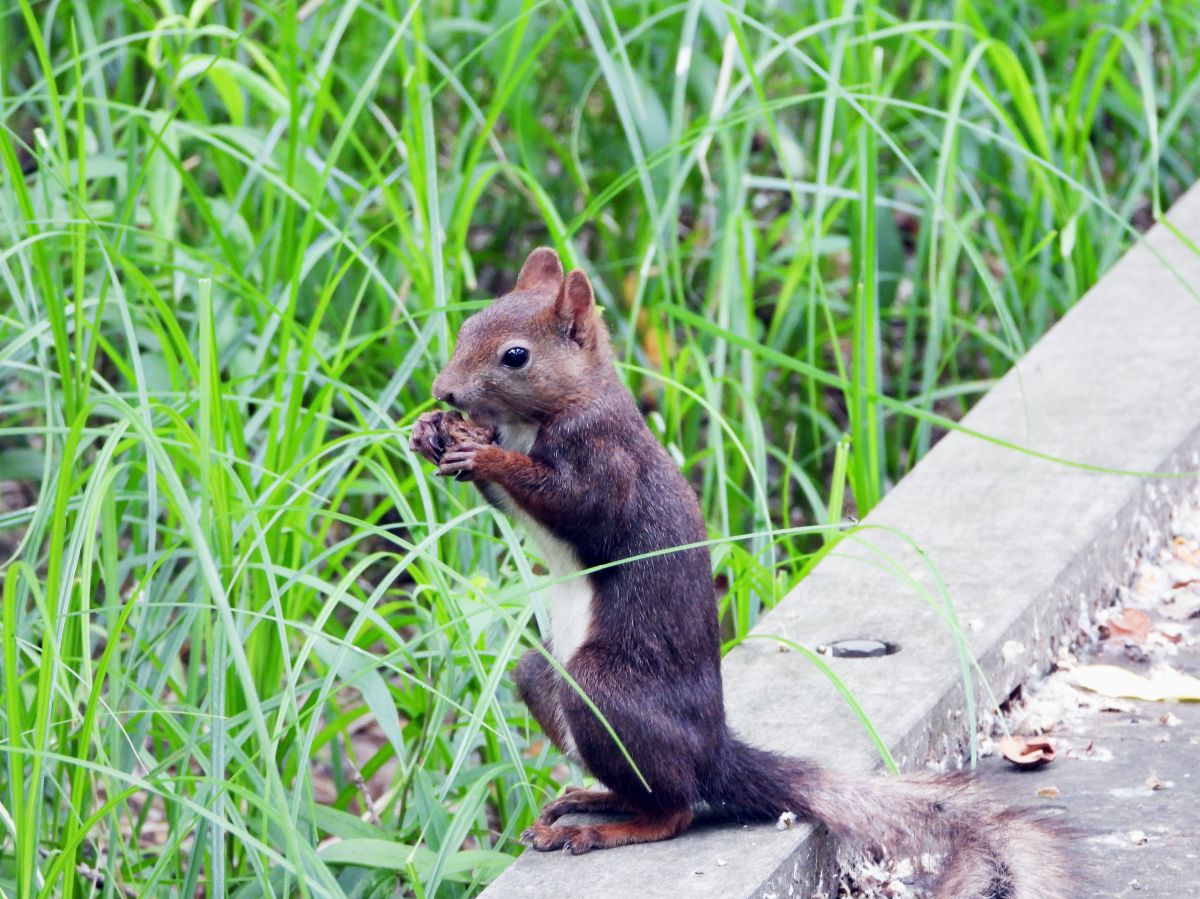 エゾリスは、1匹で行動していましたが、枯れ草を掻き分けながら採餌をしていました。