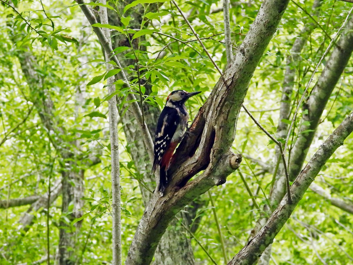 湿原でアカゲラを撮影しましたが、主に地面に降りて採餌をしていたので、撮影には手こずりました。(写真4)