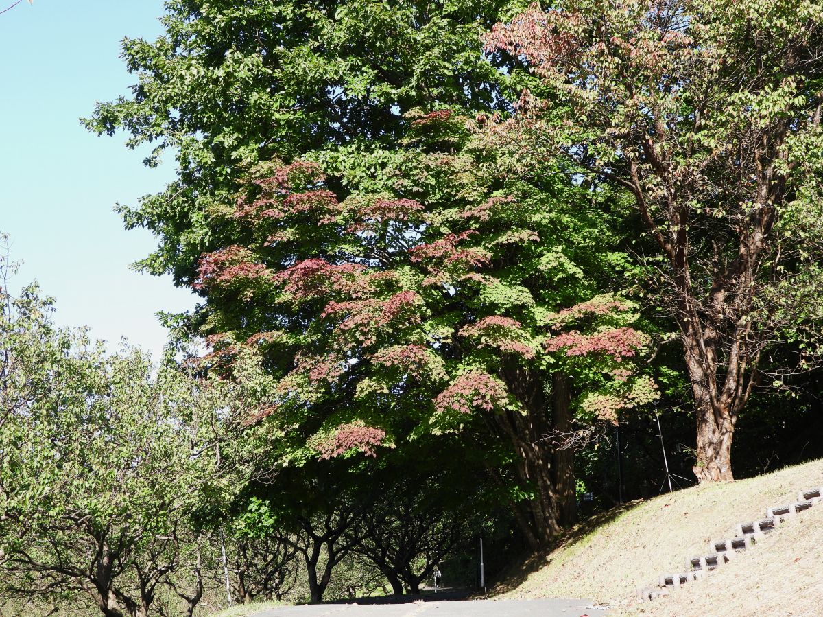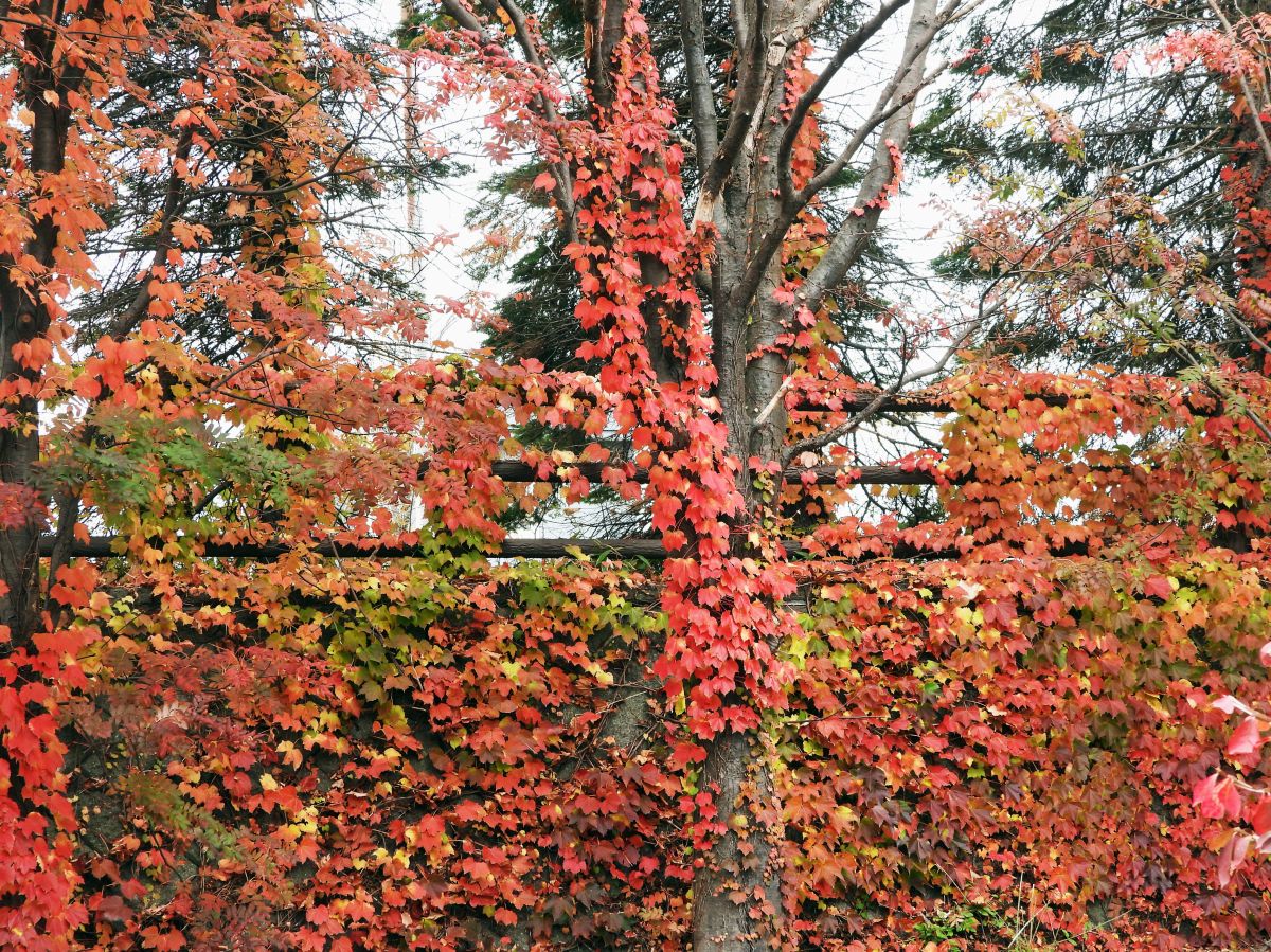 第一駐車場の道路側側壁のツタ類が最盛期を迎えています。(写真4)
