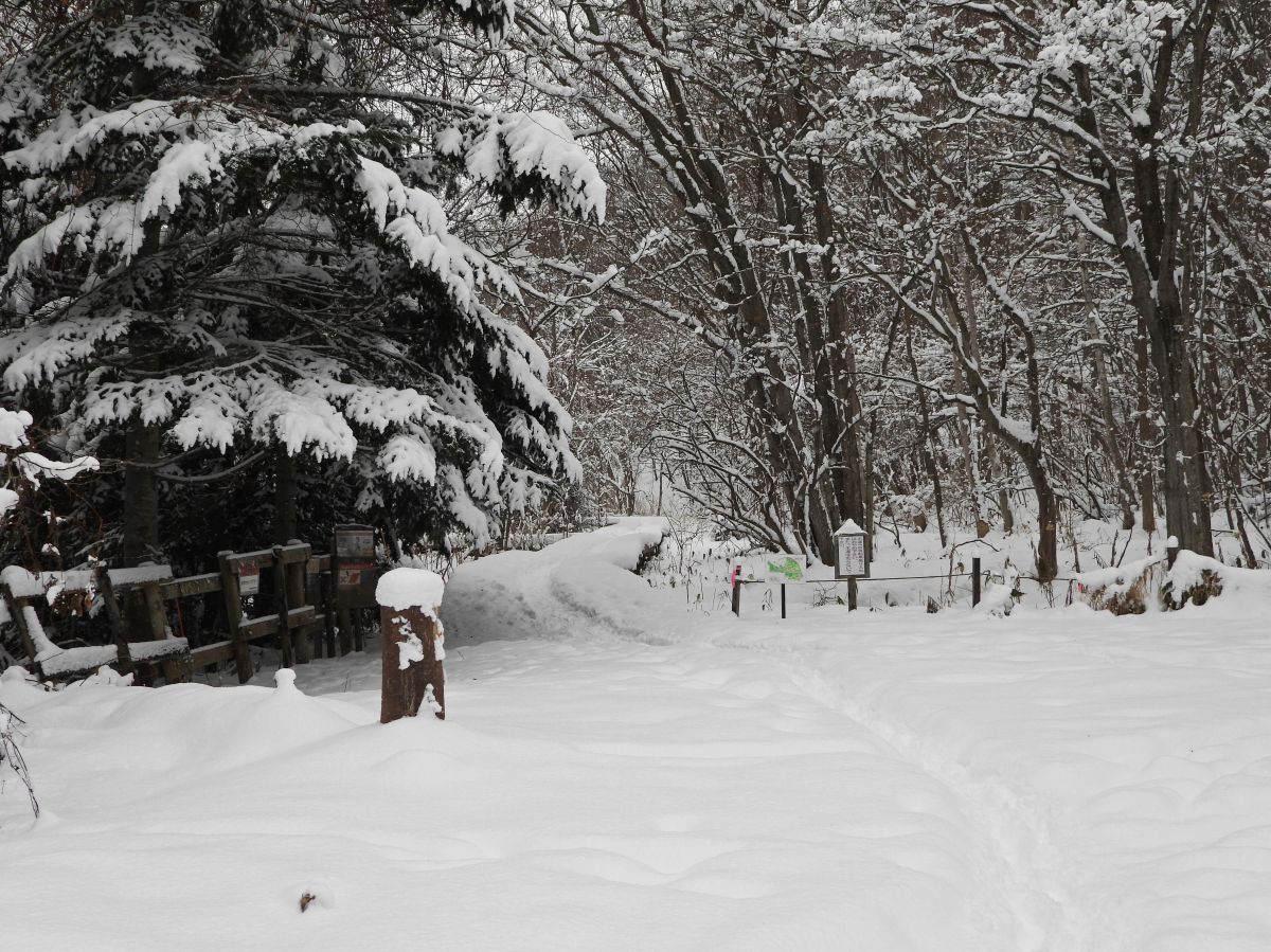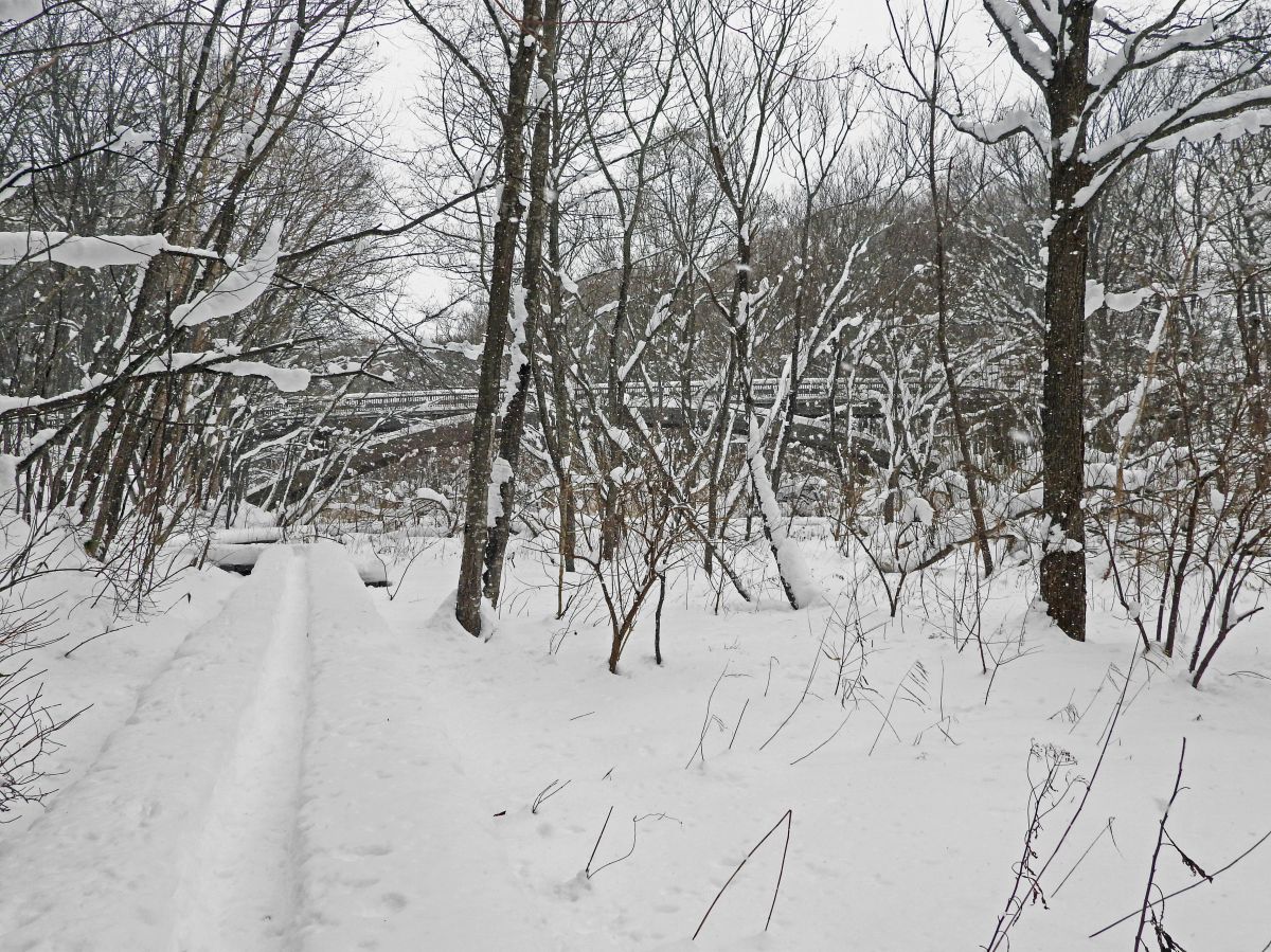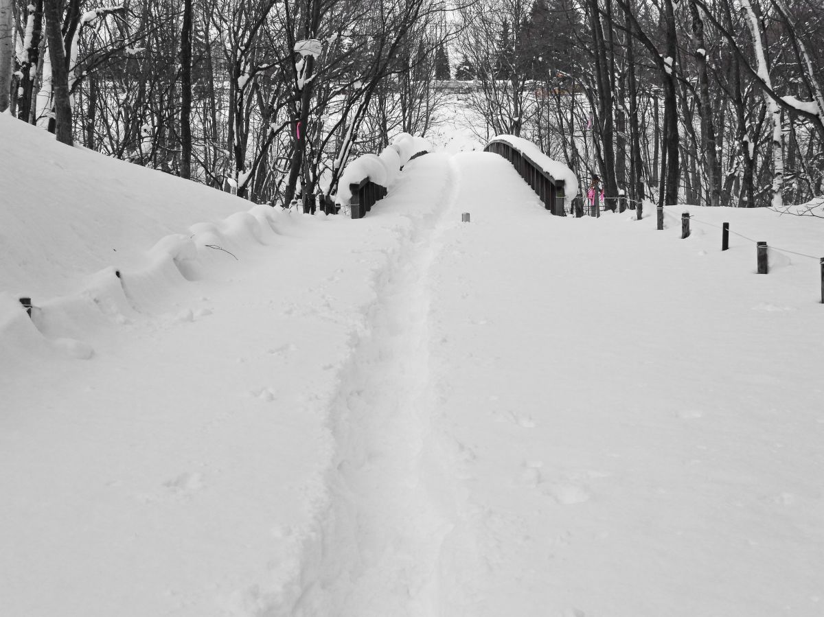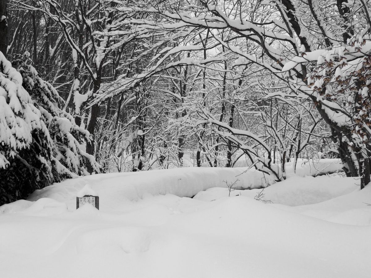 暴風雪が収まった直後なので、平岡公園の踏み跡もほとんどない状態でした。