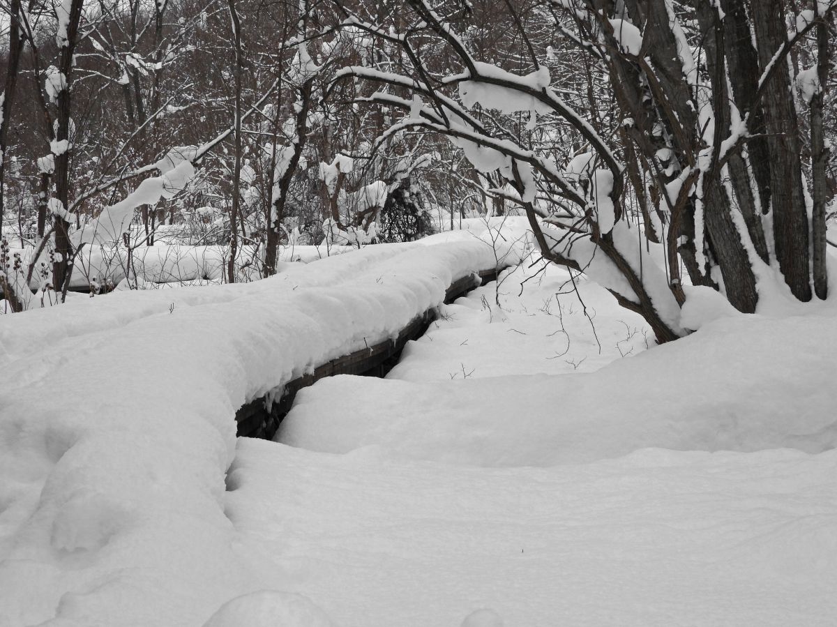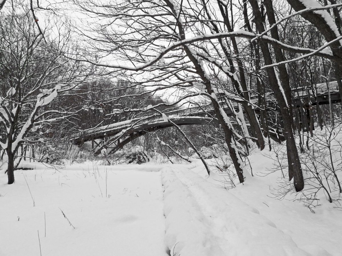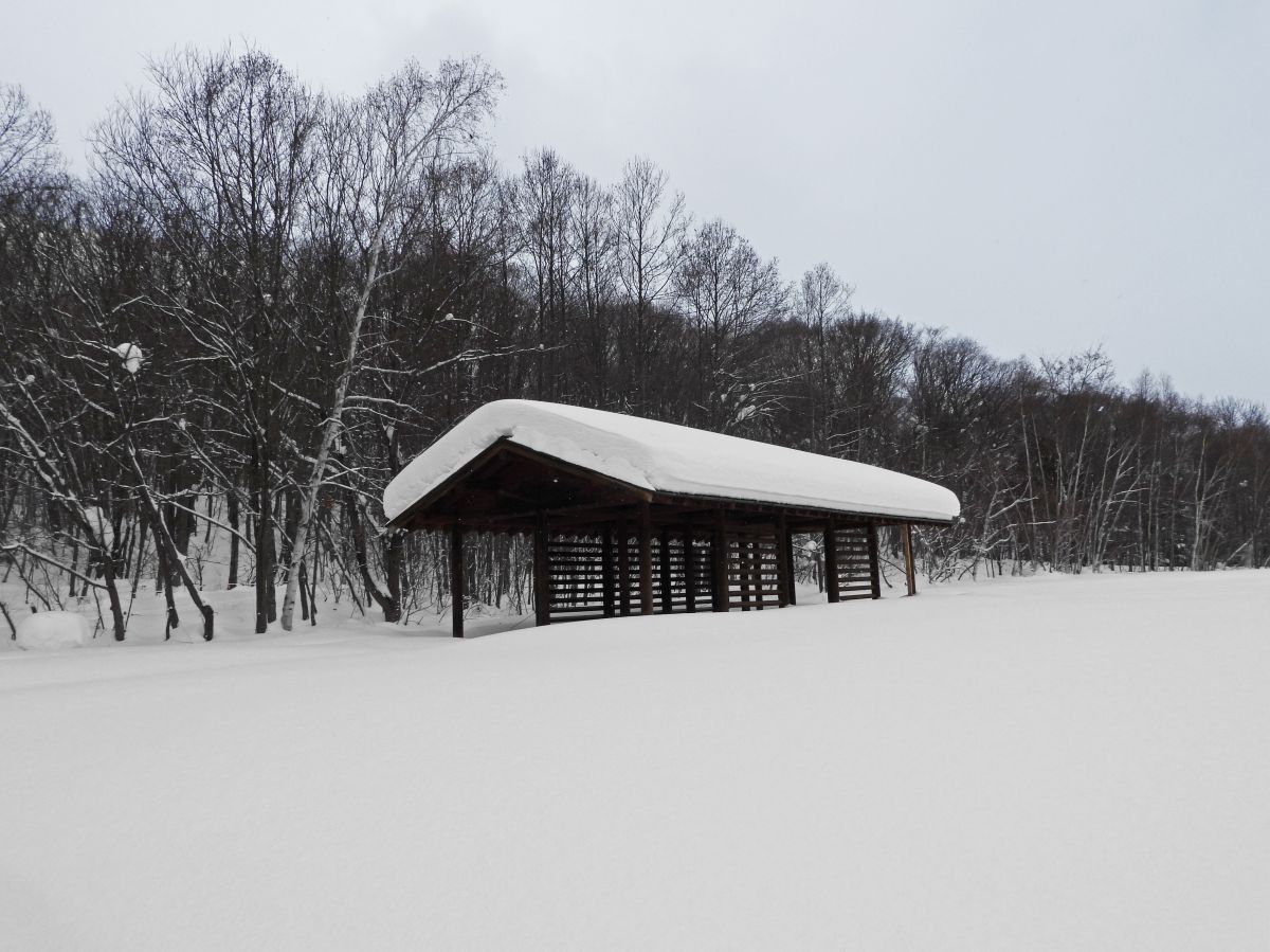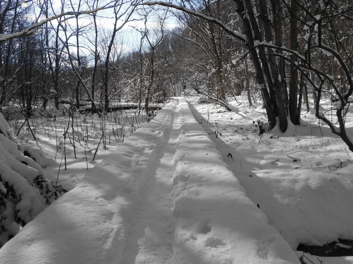 暴風雪が収まった直後なので、平岡公園の踏み跡もほとんどない状態でした。
