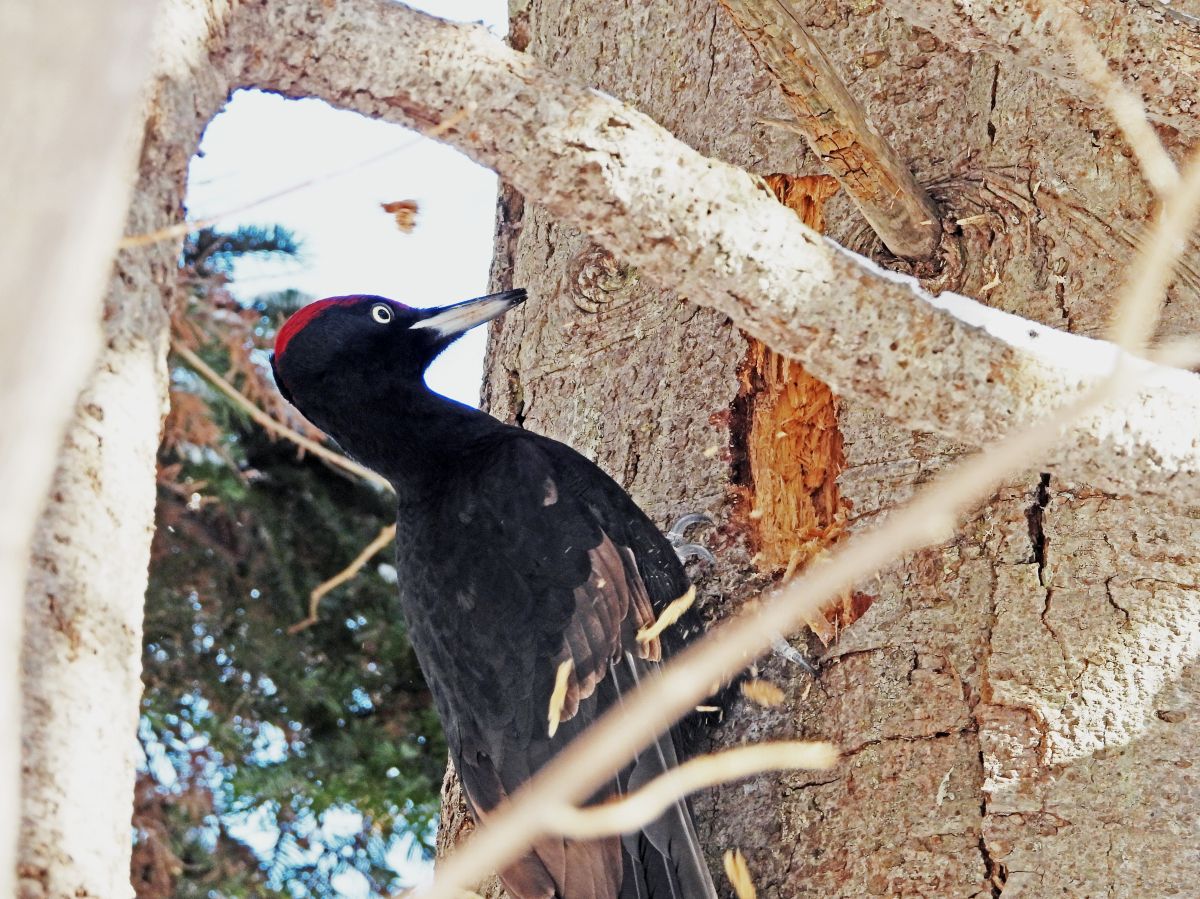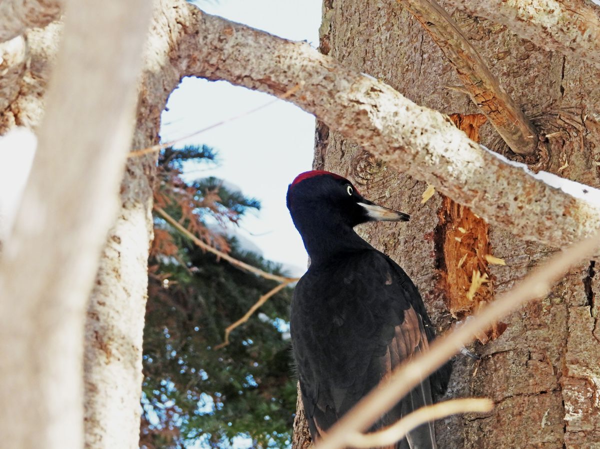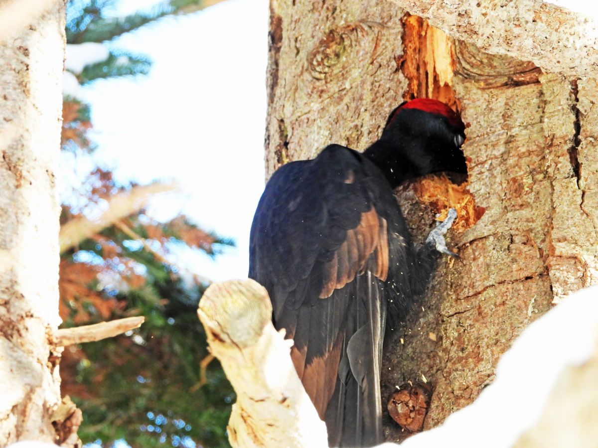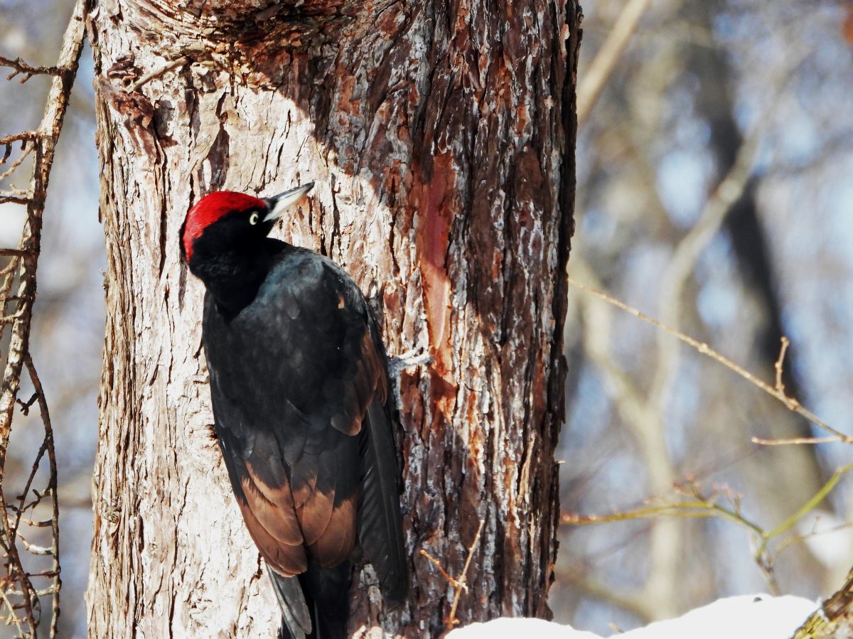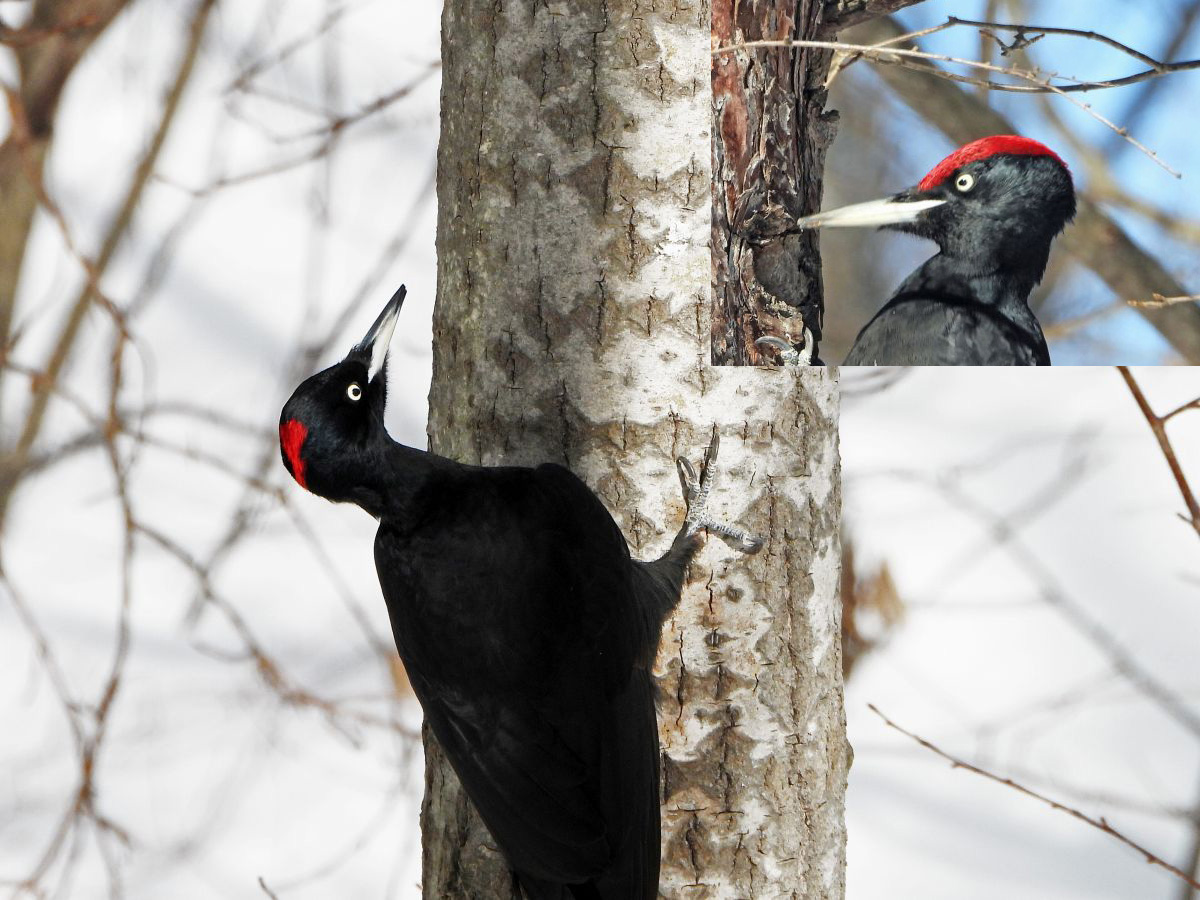 前回のクマゲラは雄でしたが、今日のクマゲラは雌でした。