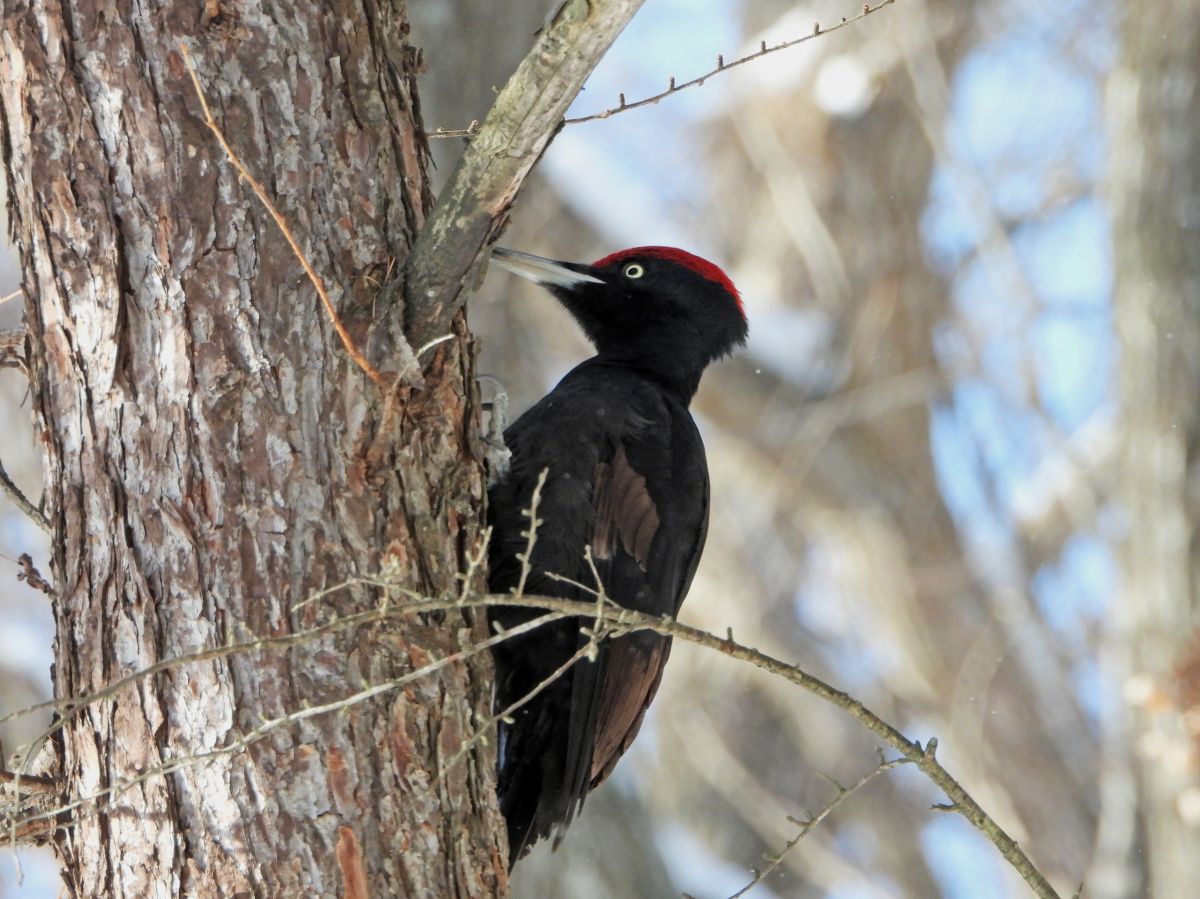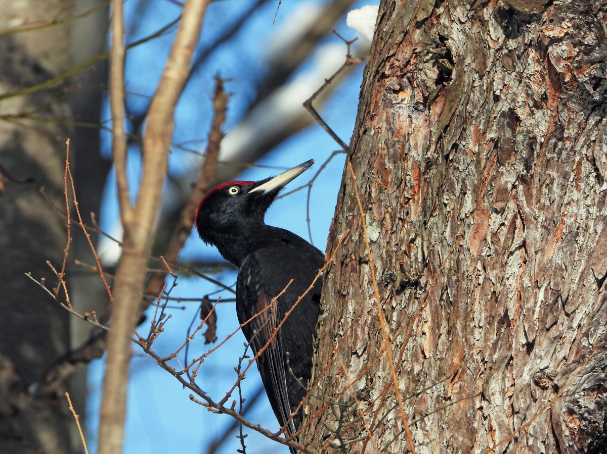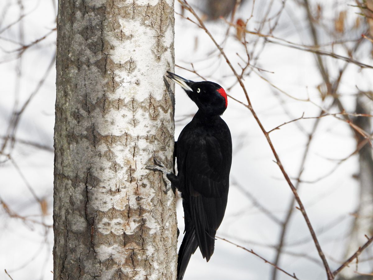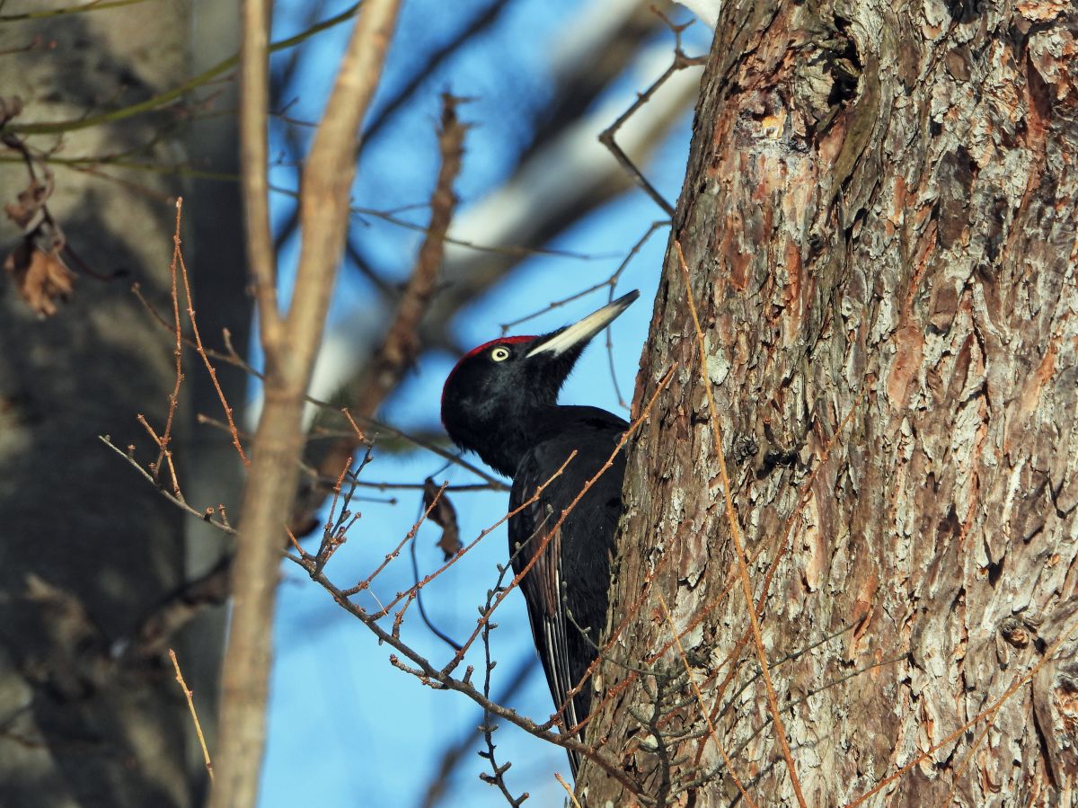 前回のクマゲラは雄でしたが、今日のクマゲラは雌でした。