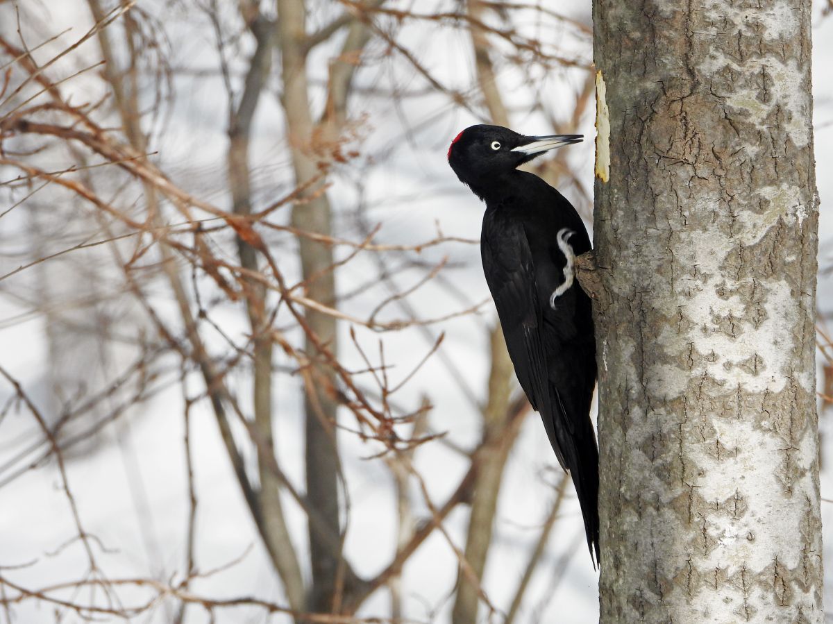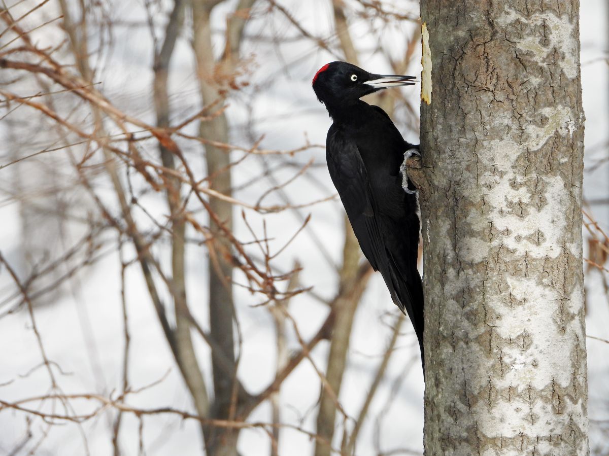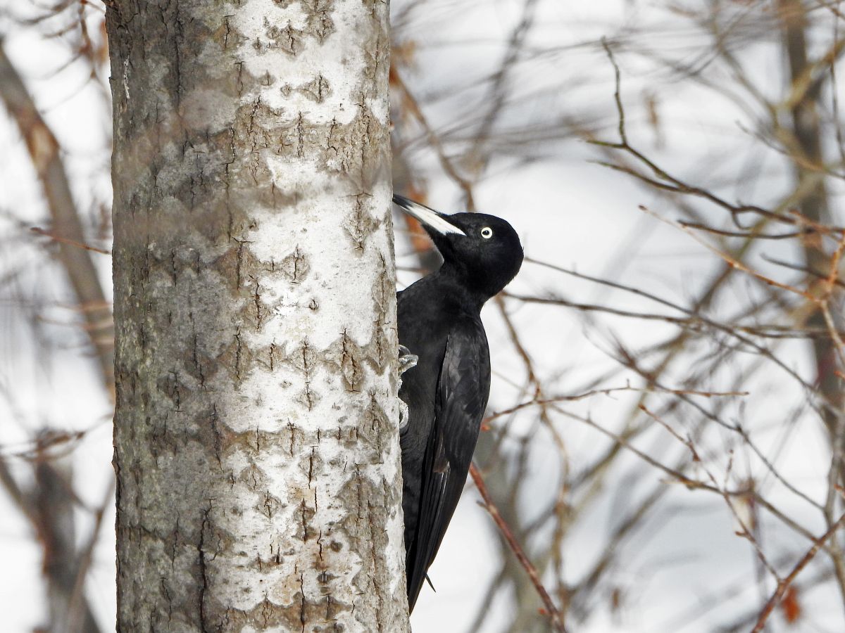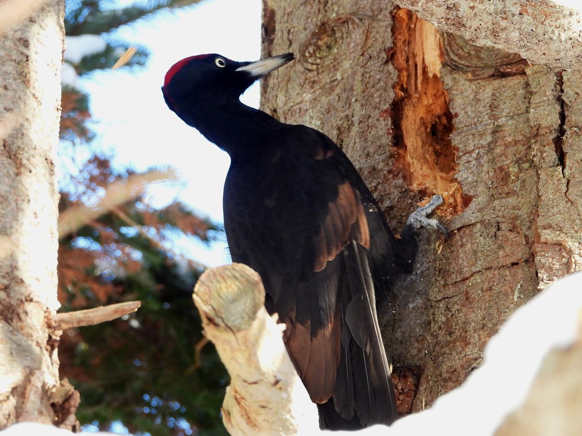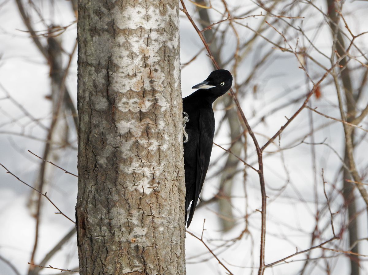 前回のクマゲラは雄でしたが、今日のクマゲラは雌でした。