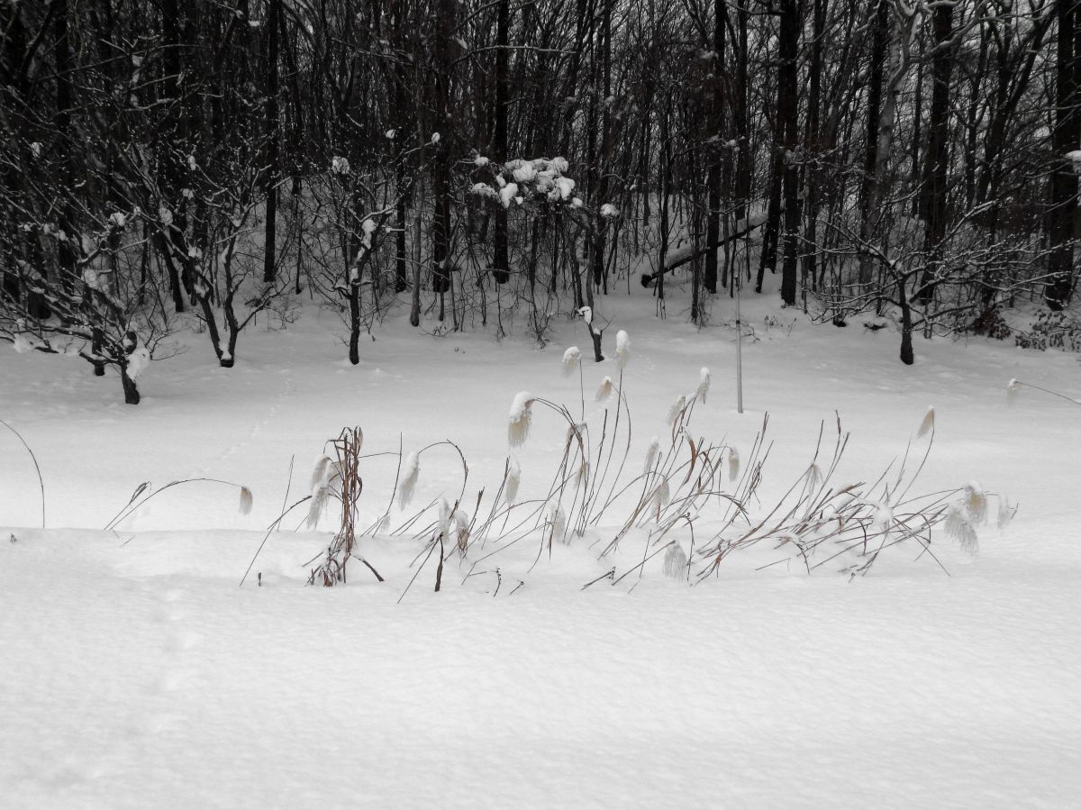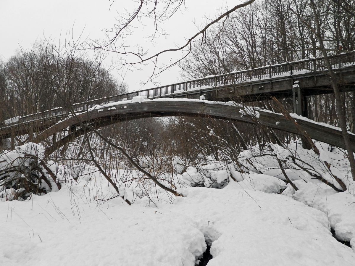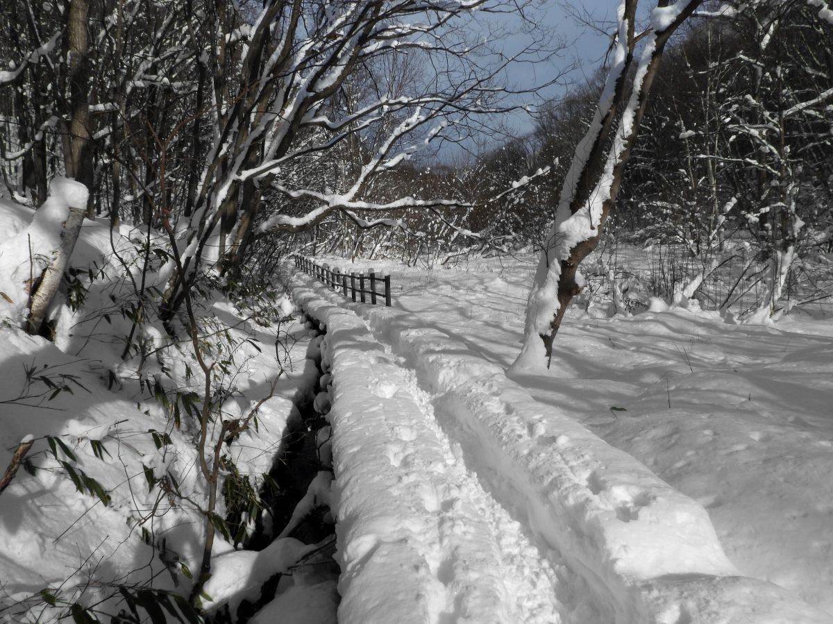 雪が深くなかったので、一応湿原の木道を1/4程度歩いてみました。(写真8,9)
