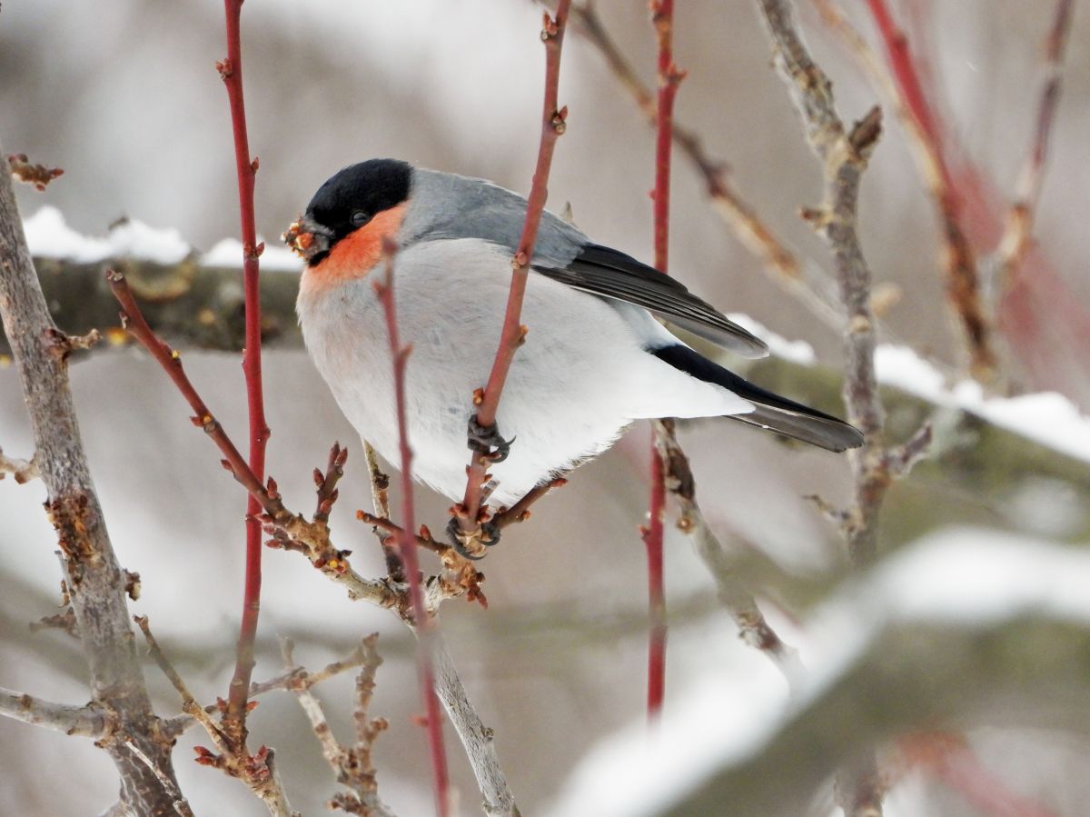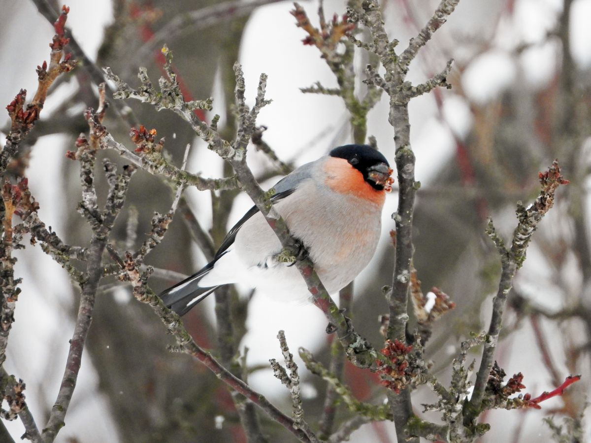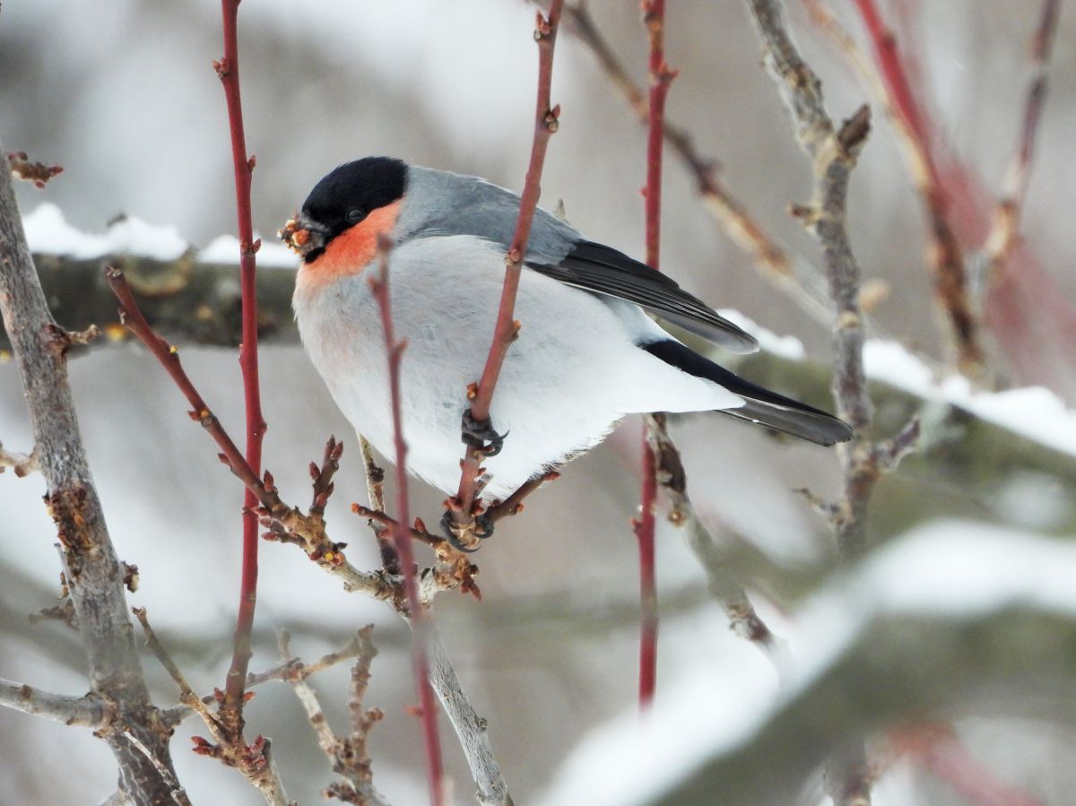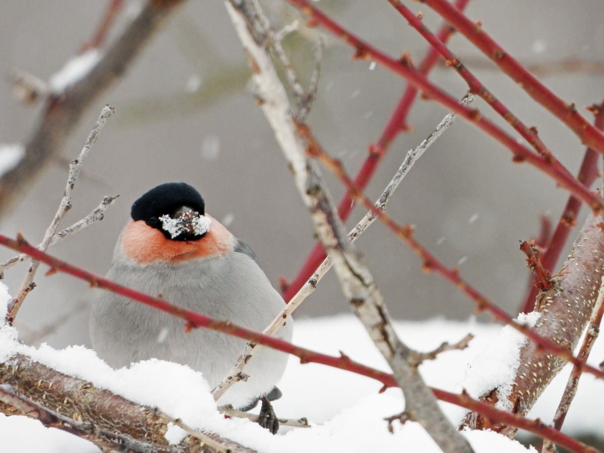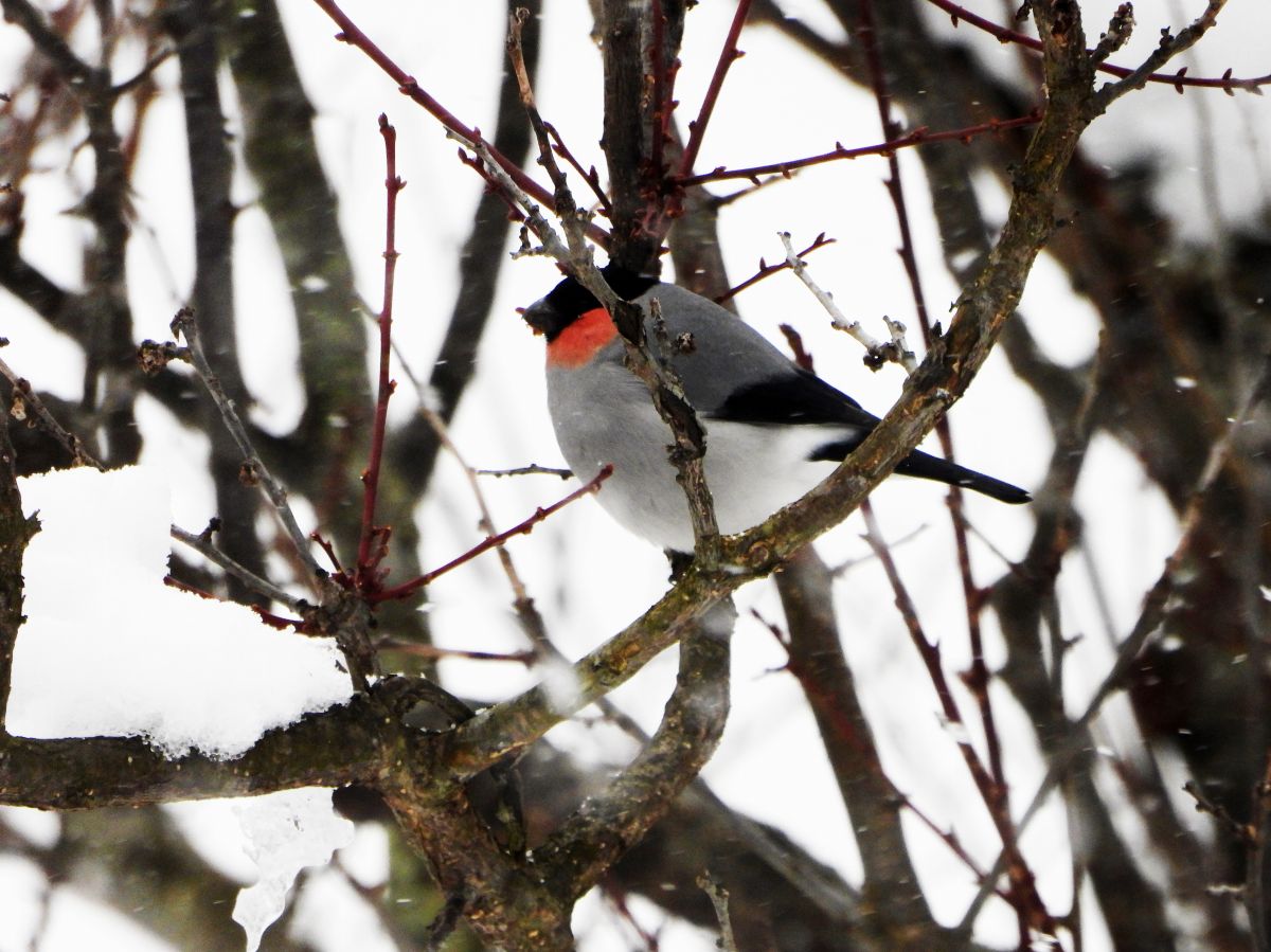 雪景色ばかりでは味気ないので、22日に撮影したウソの写真をアップしました。(写真1〜3)
