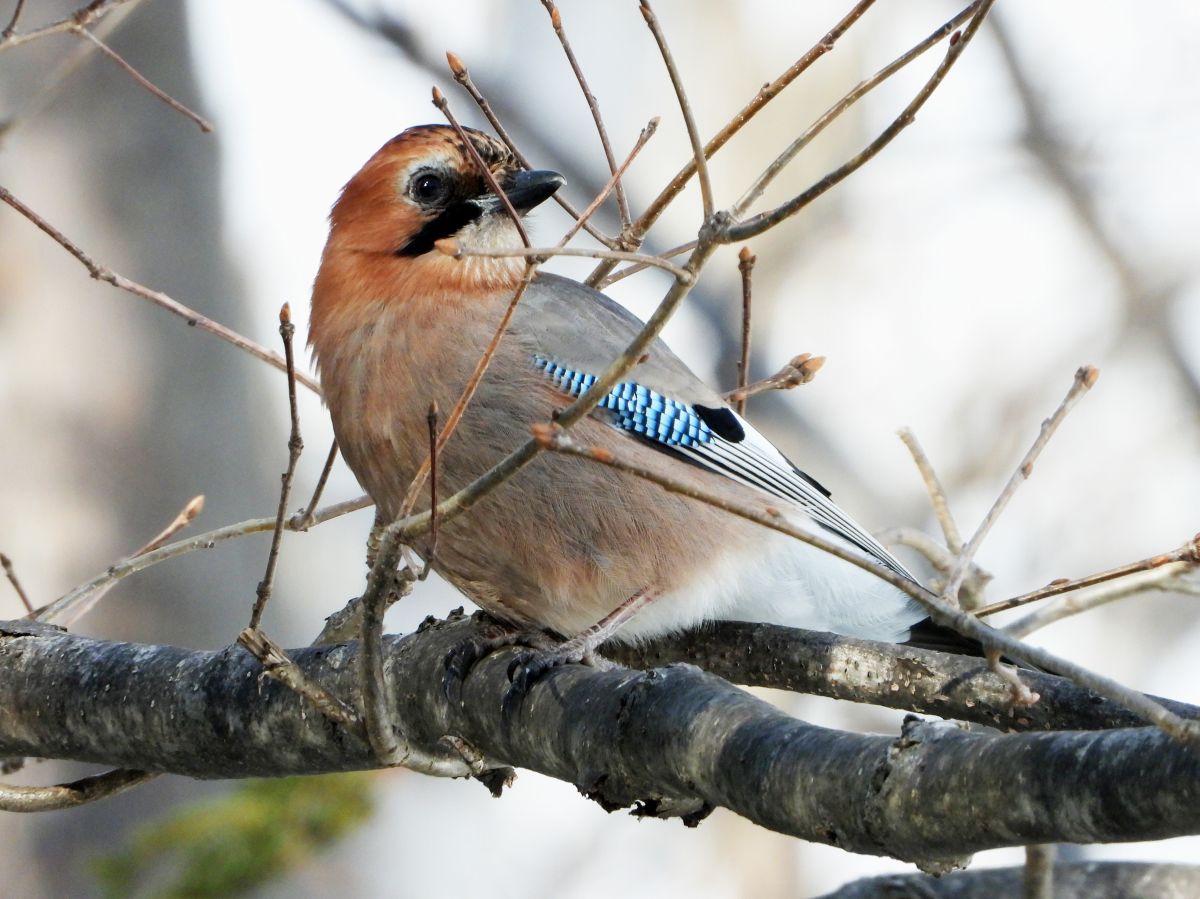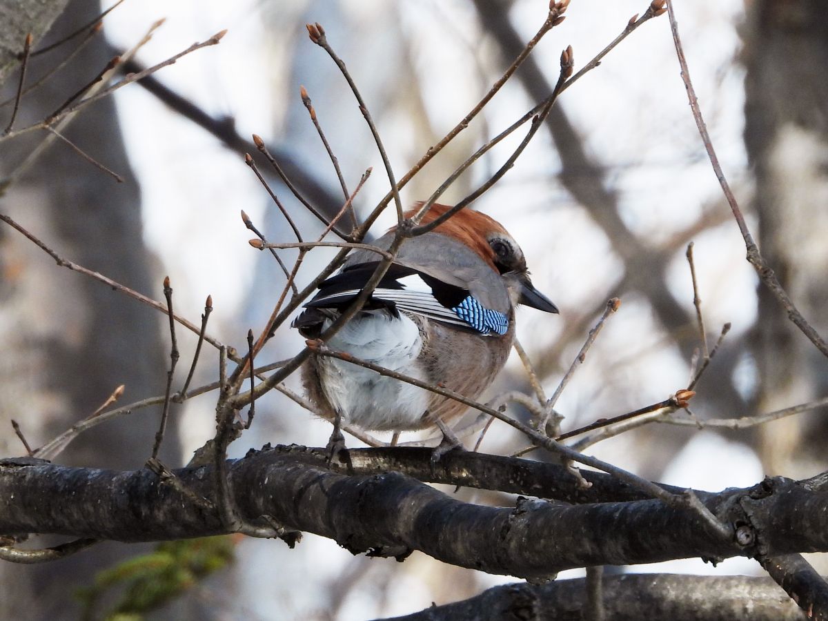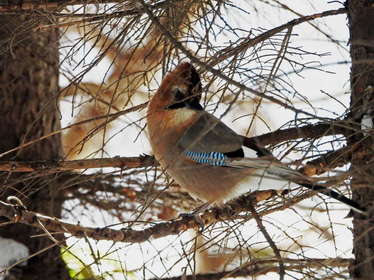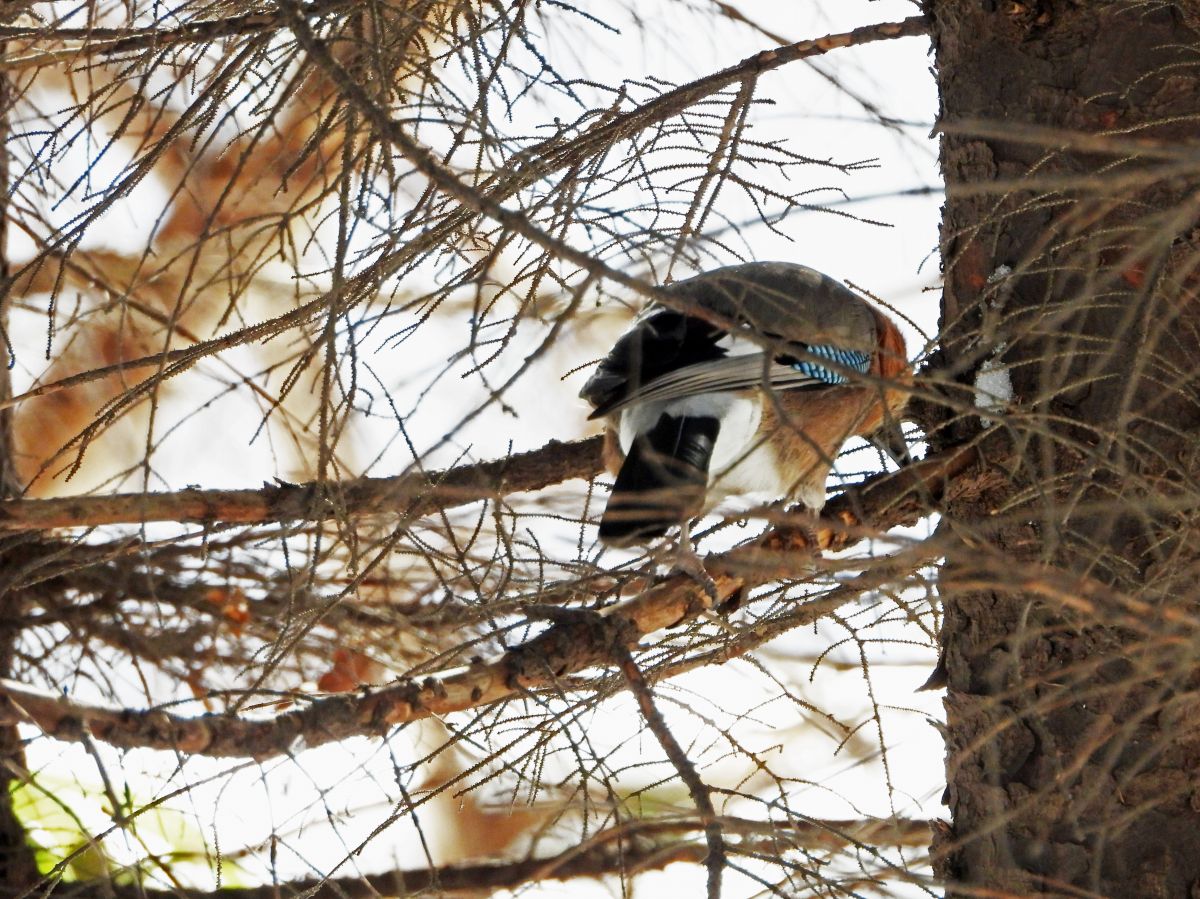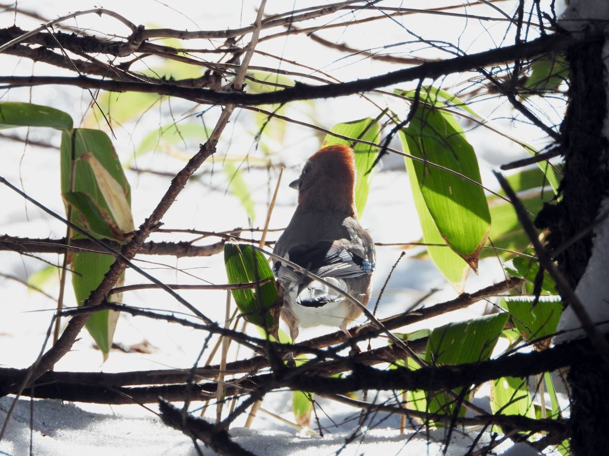 カケスは、木々の枝の濃い場所で採餌をしていたので、綺麗な写真にはなりませんでした。