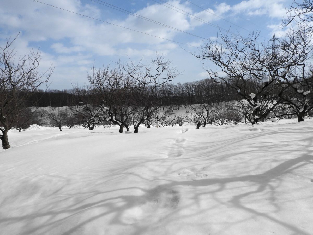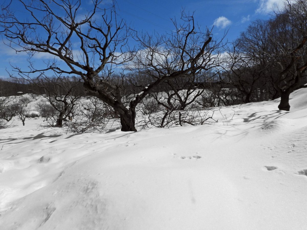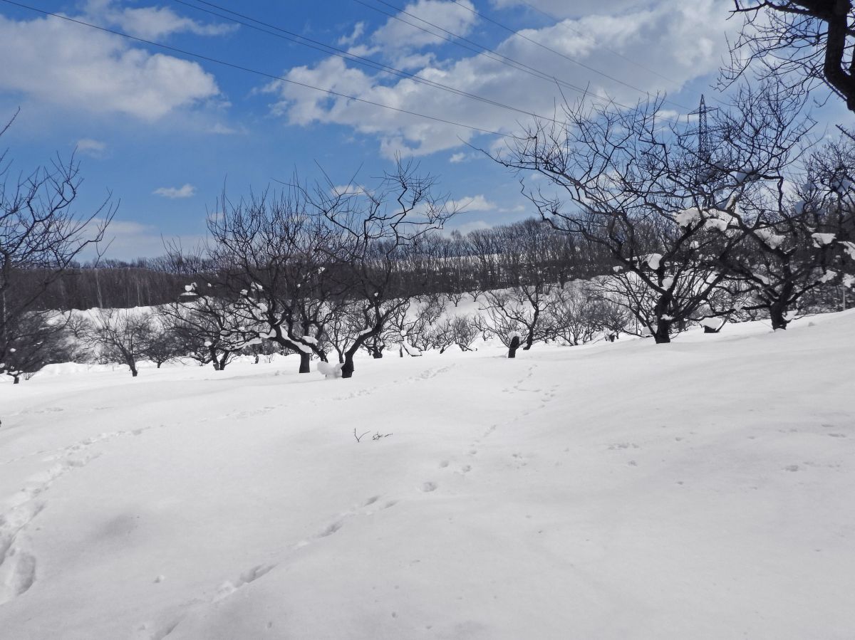 積雪は表面が硬くなってきて、長靴でも埋まらないで歩けるようになってきました。
