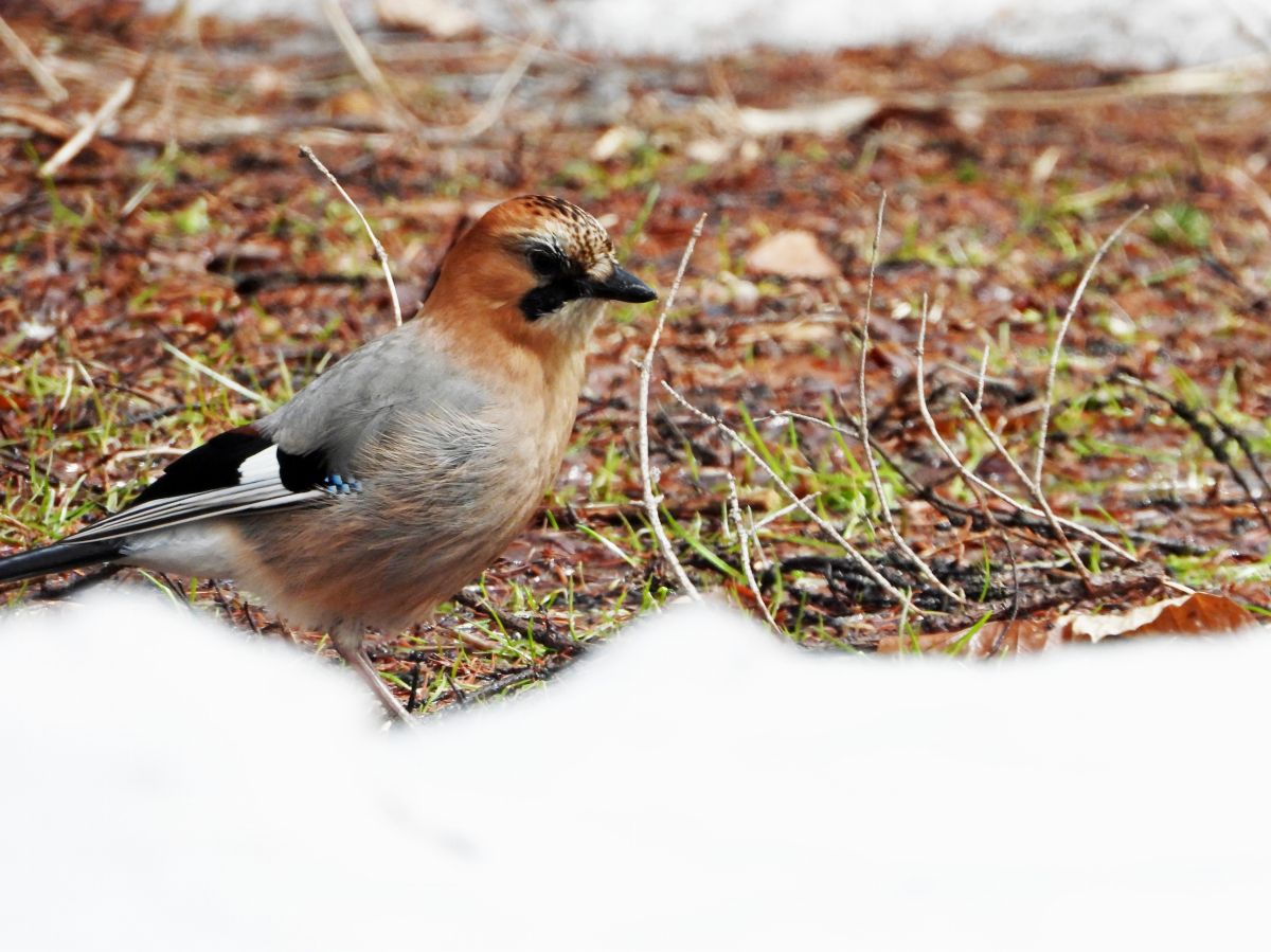 湿原の雪の消えた部分で姿を現しました。