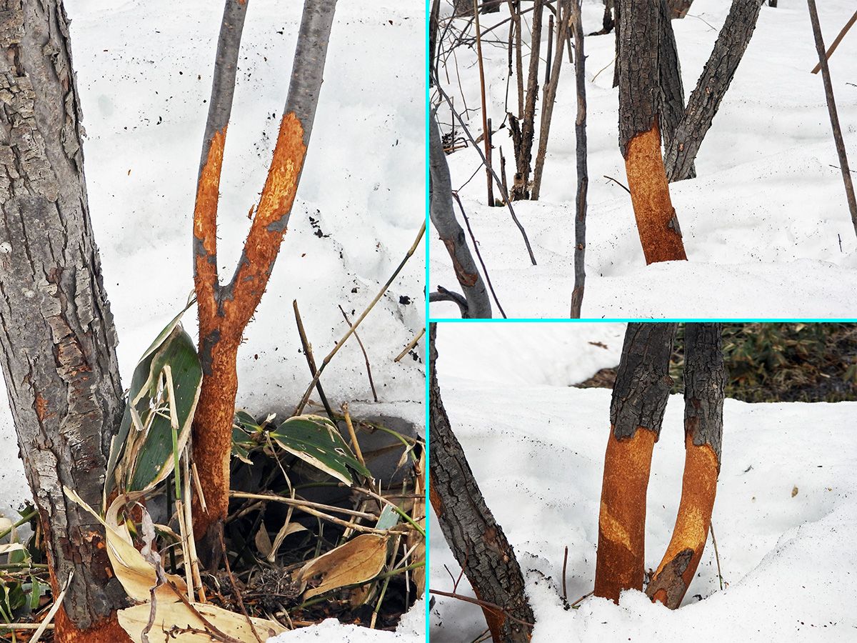 多分雪に埋まっている時に、ネズミに食べられたのではないかと思われます。