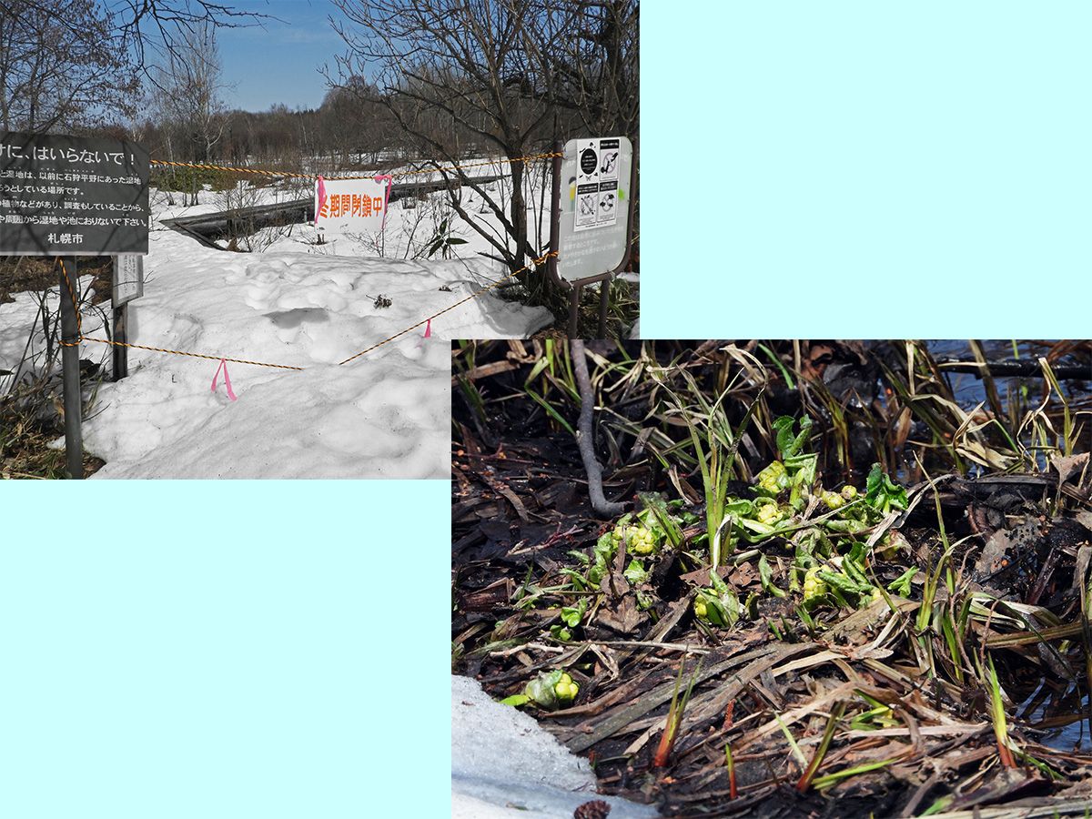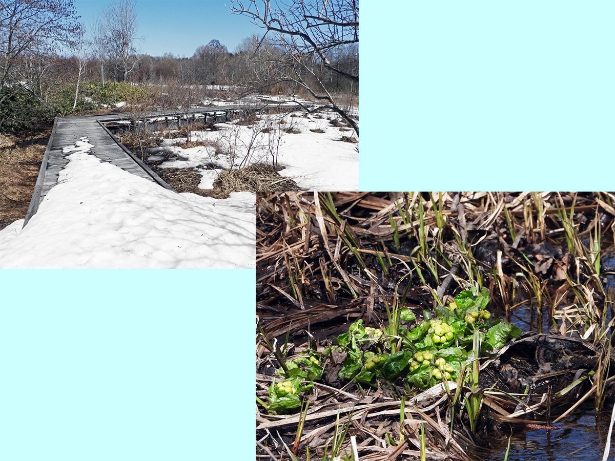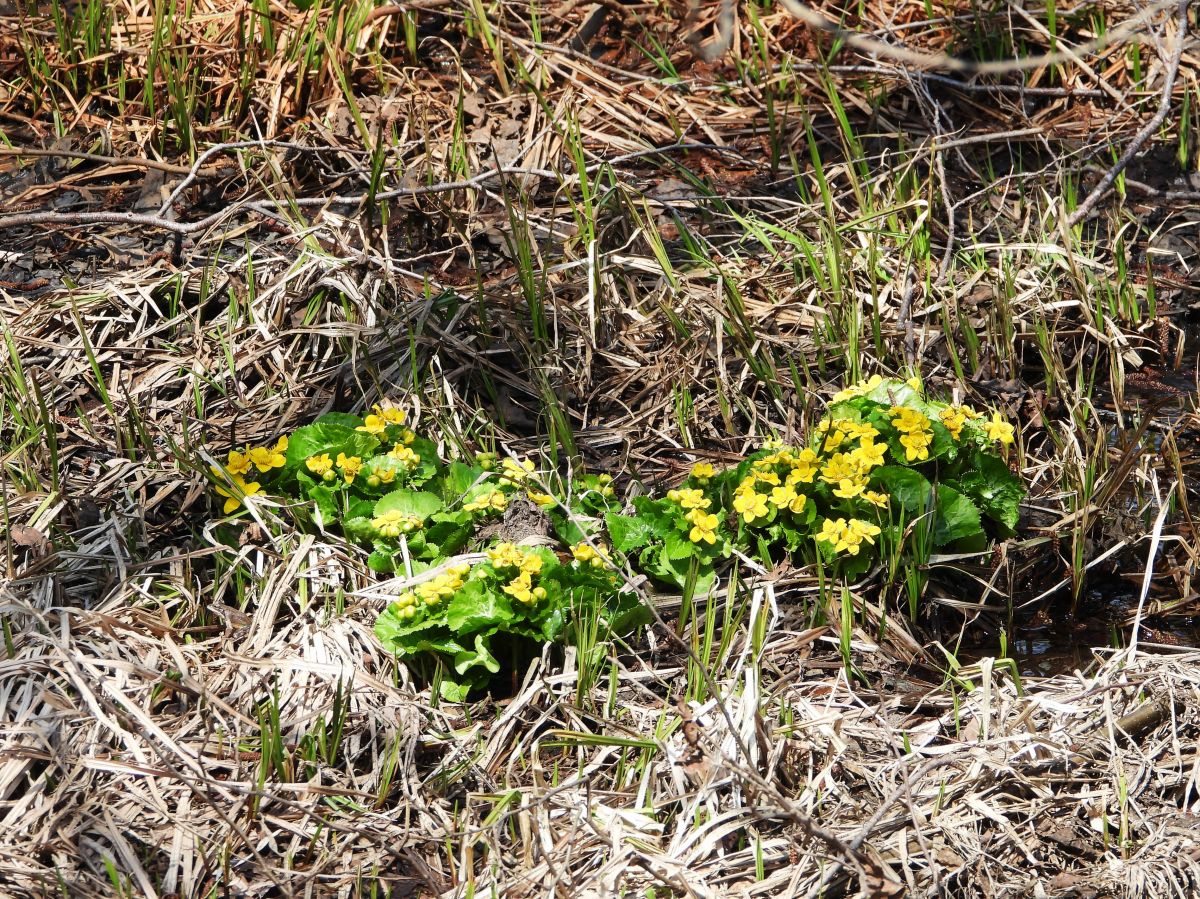 エゾノリュウキンカは第一駐車場下の湿原でも、複数箇所で開花を始めました。