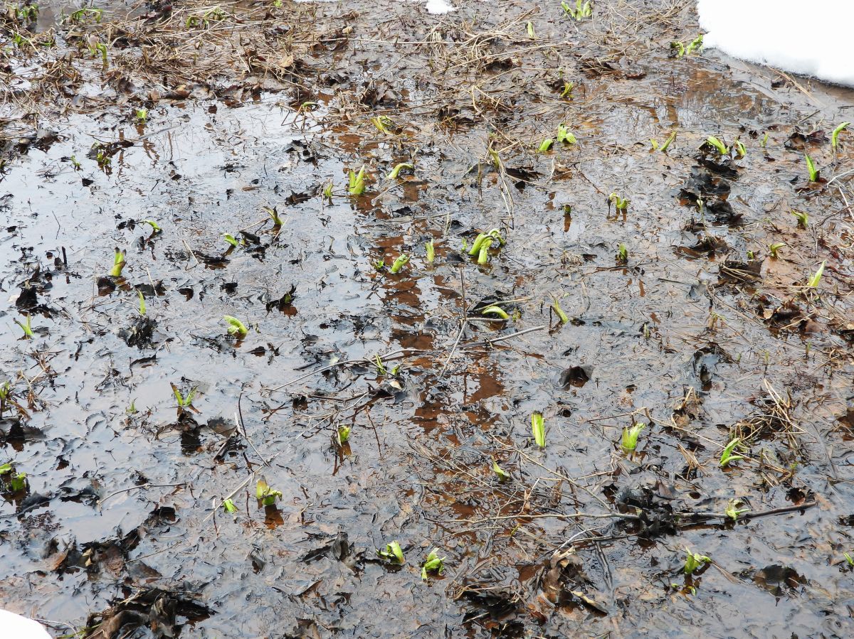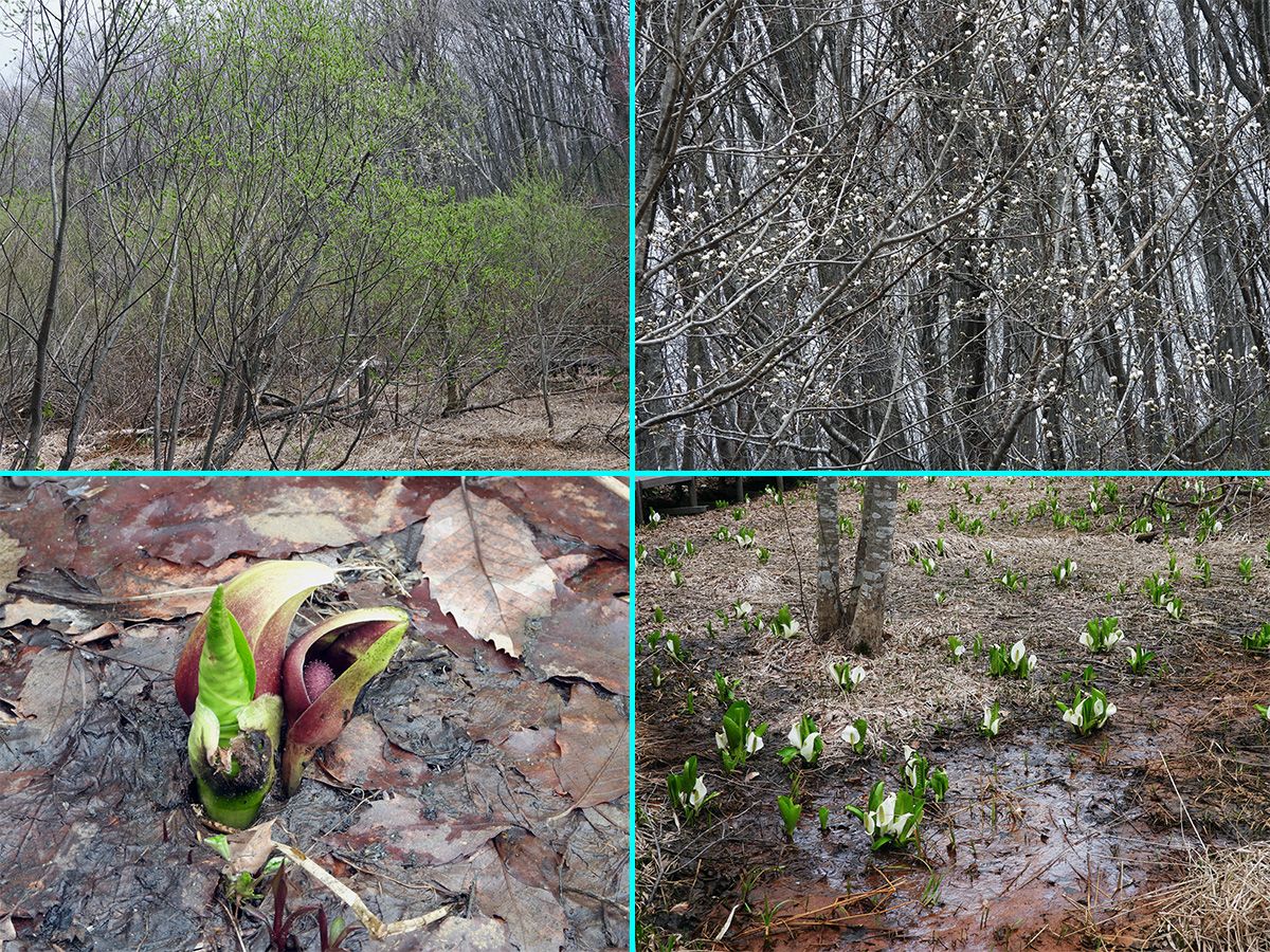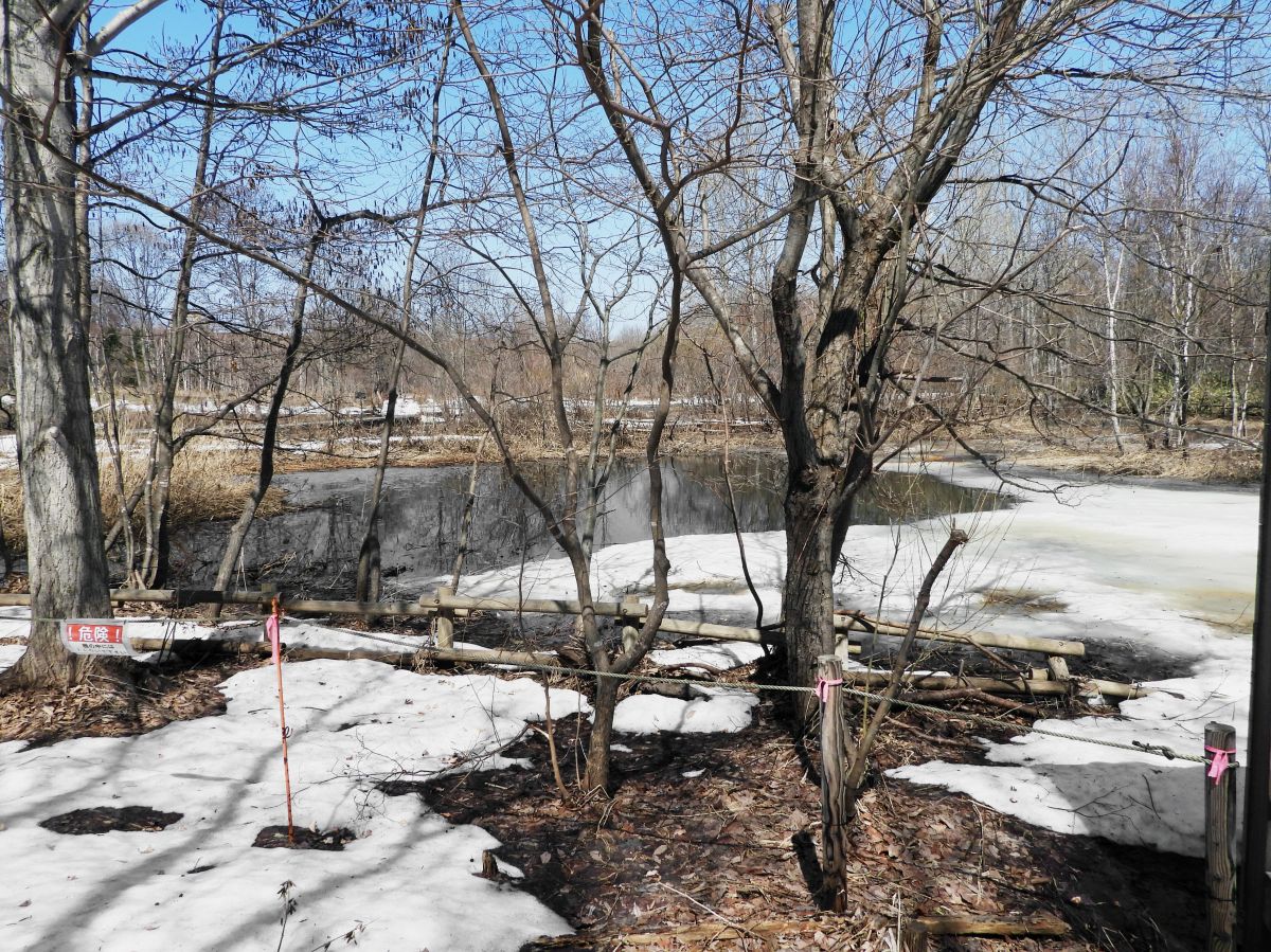 エゾノリュウキンカは第一駐車場下の湿原でも、複数箇所で開花を始めました。