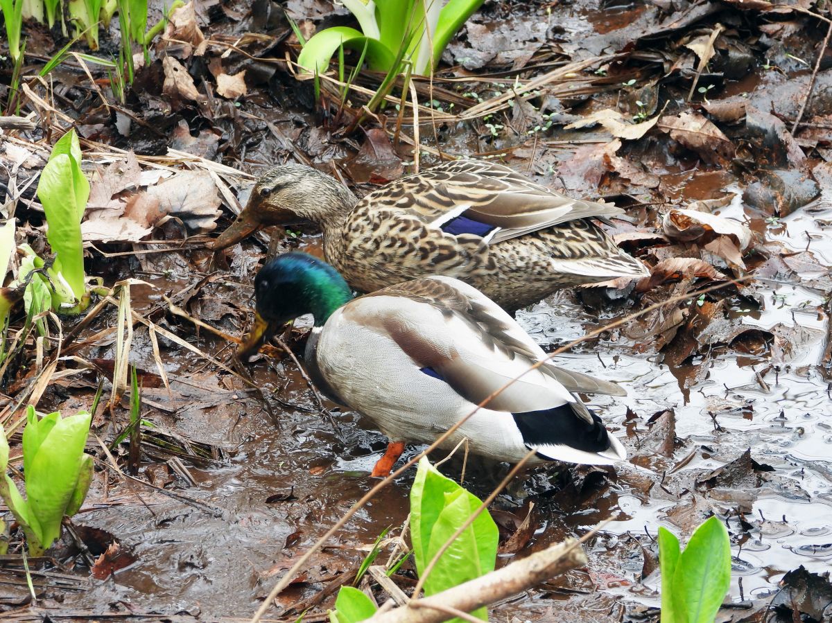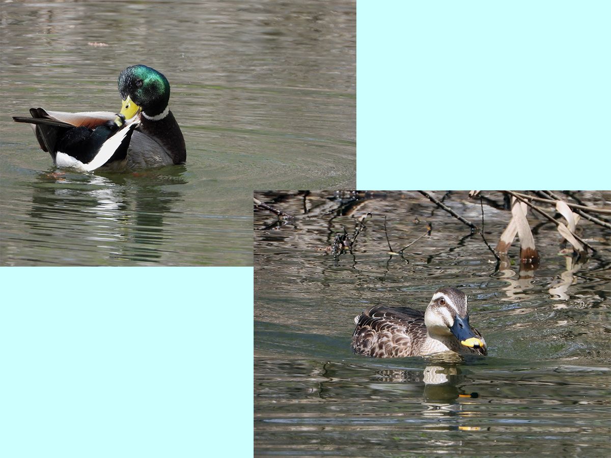 人工池でマガモのつがいが採餌をしていました。(写真4,5)