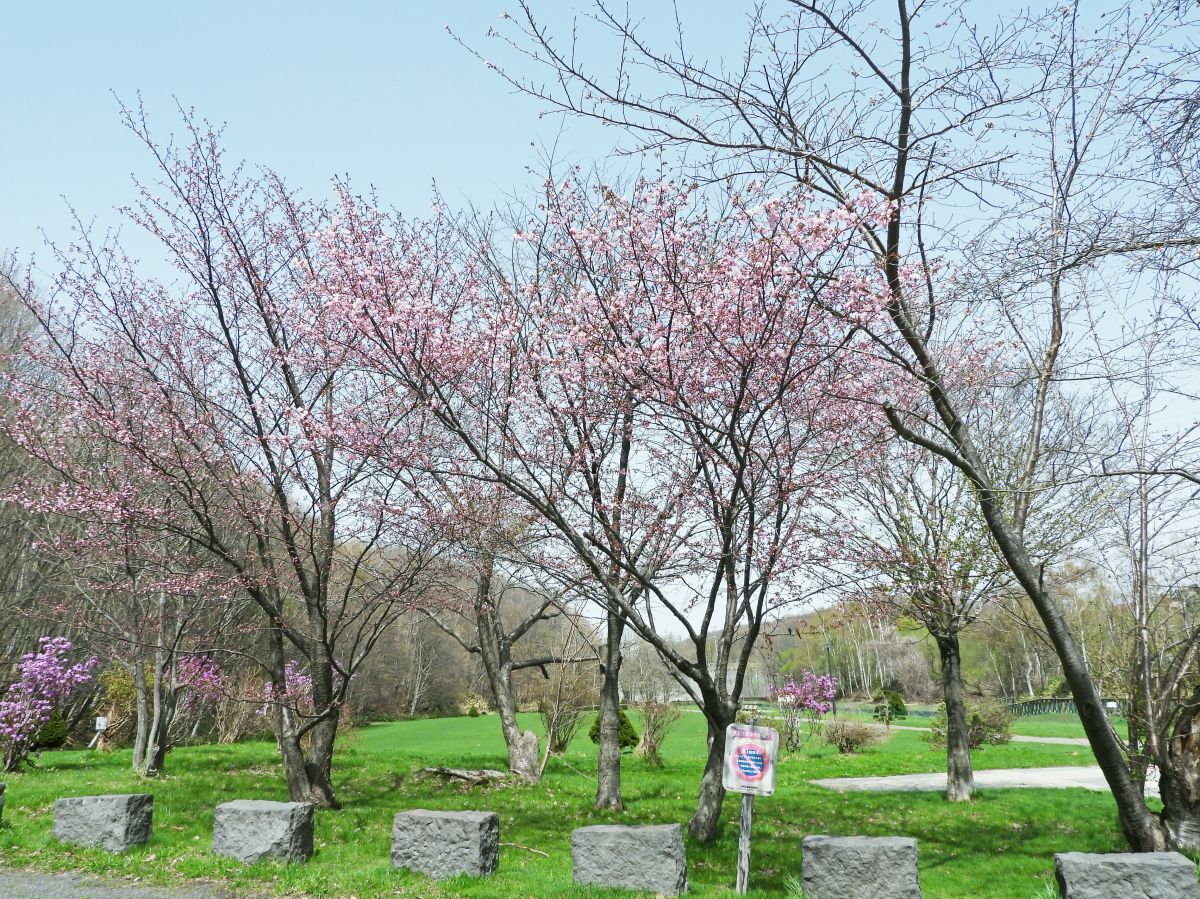 市街地では、桜が綺麗に咲いていますが、平岡公園の桜も咲き始めました。(写真9)