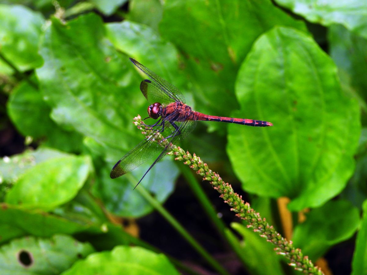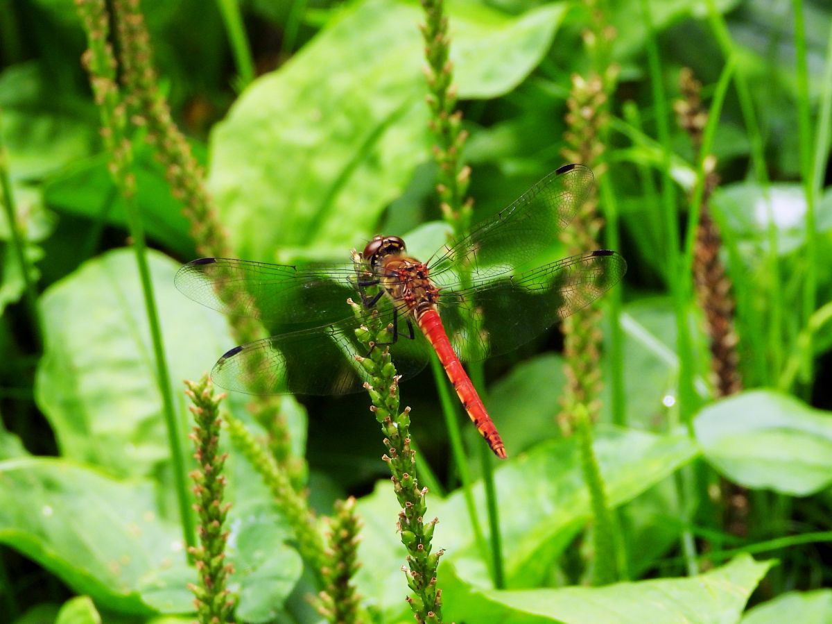 湿原や人工池の周辺では多くのトンボが飛びまわっていて、特に赤トンボが大半を占めている感じです。