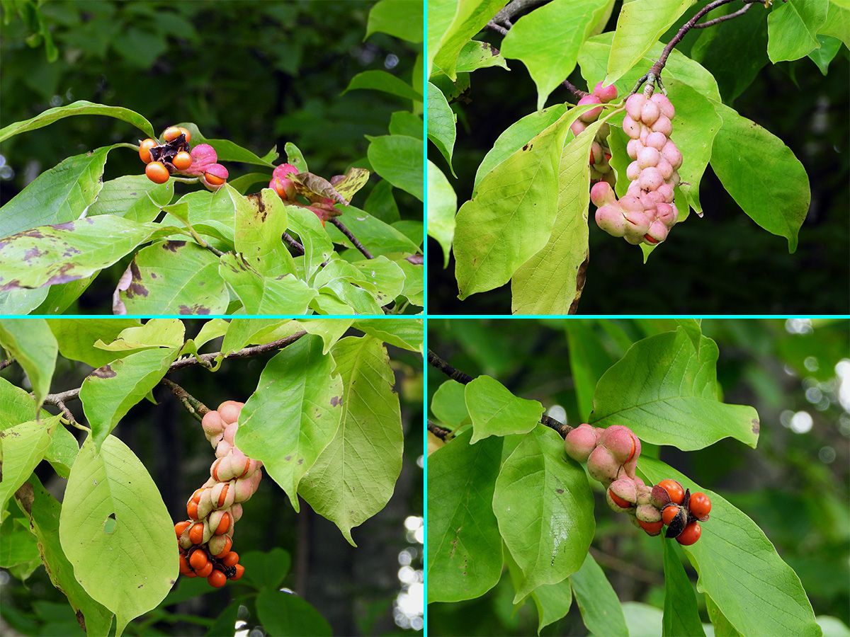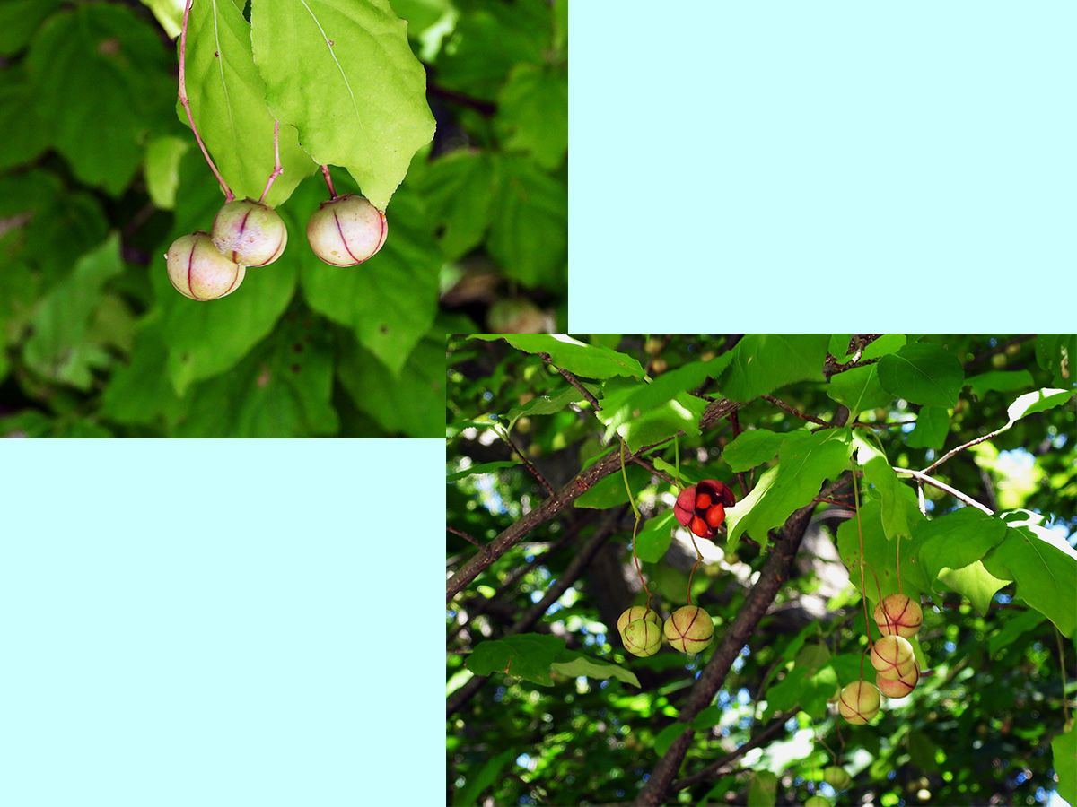 実が薄い袋に覆われた状態で成長して、最後に袋が破れて実が露出します。