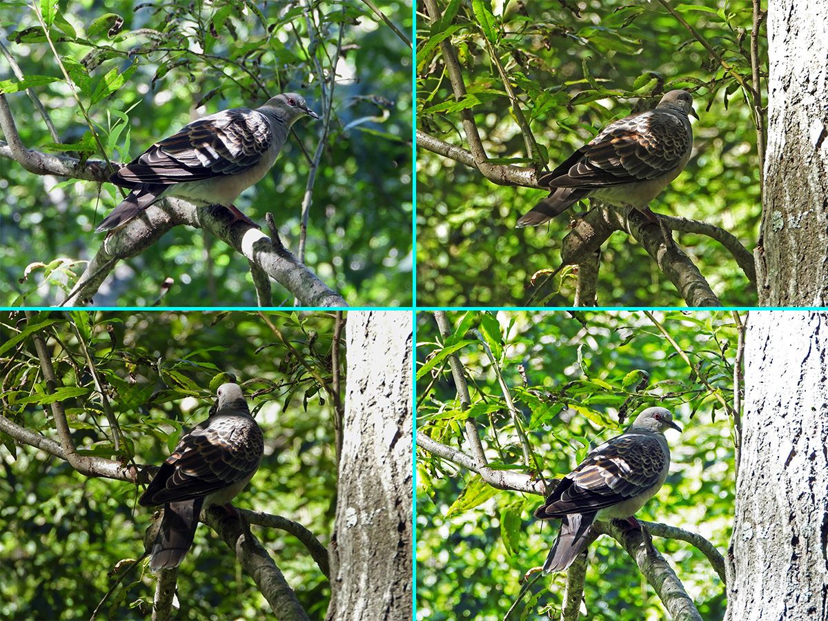 葉の茂った木の枝から枝に移動するので、撮影は運任せの状態です。
