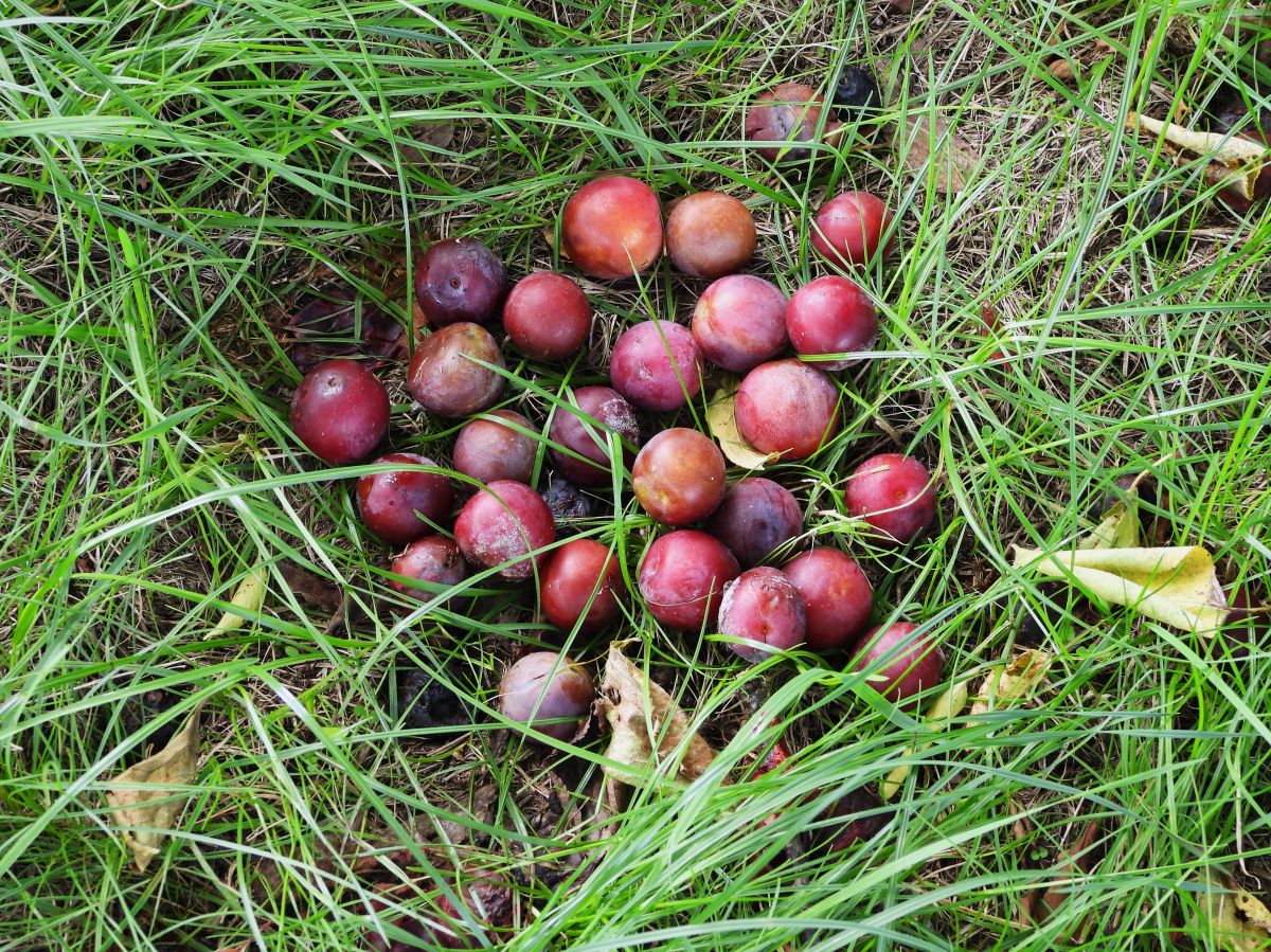 最近、林の中の遊歩道を歩いている時に、ゴルフボール大の緑色の実が「ドスン」と言う感じで落ちてきたことがあります。