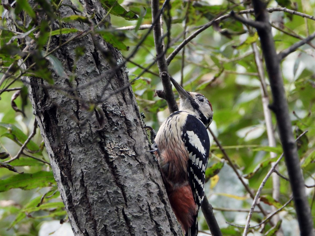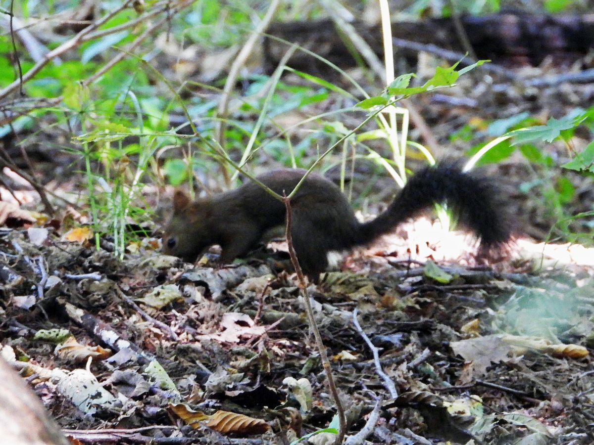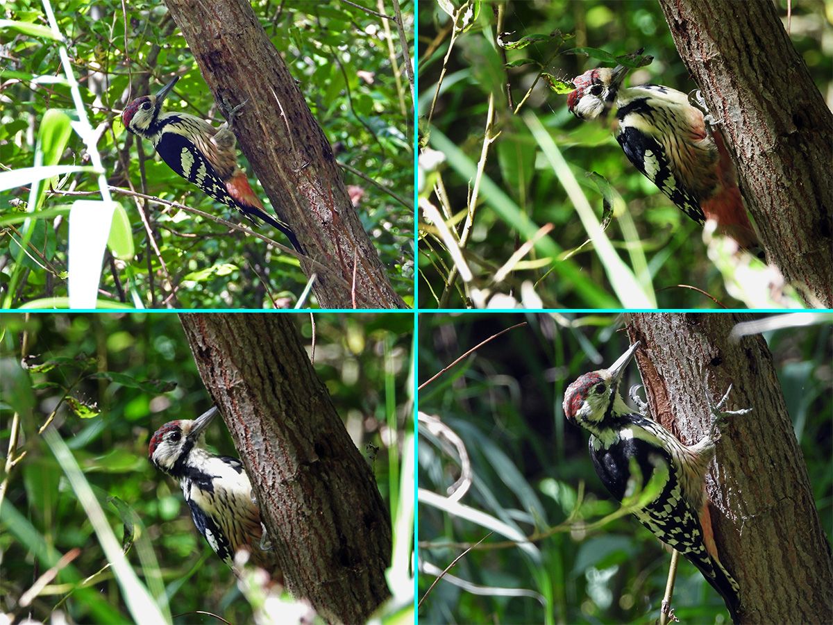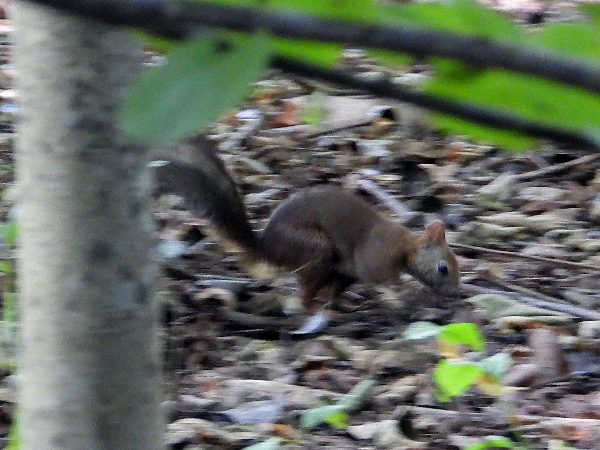 人工池の道路をはさんで向かい側の林で採餌をしていました。