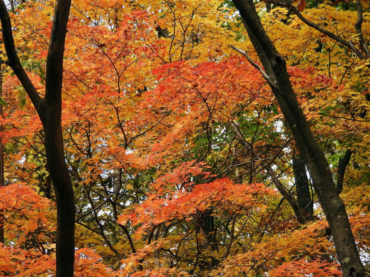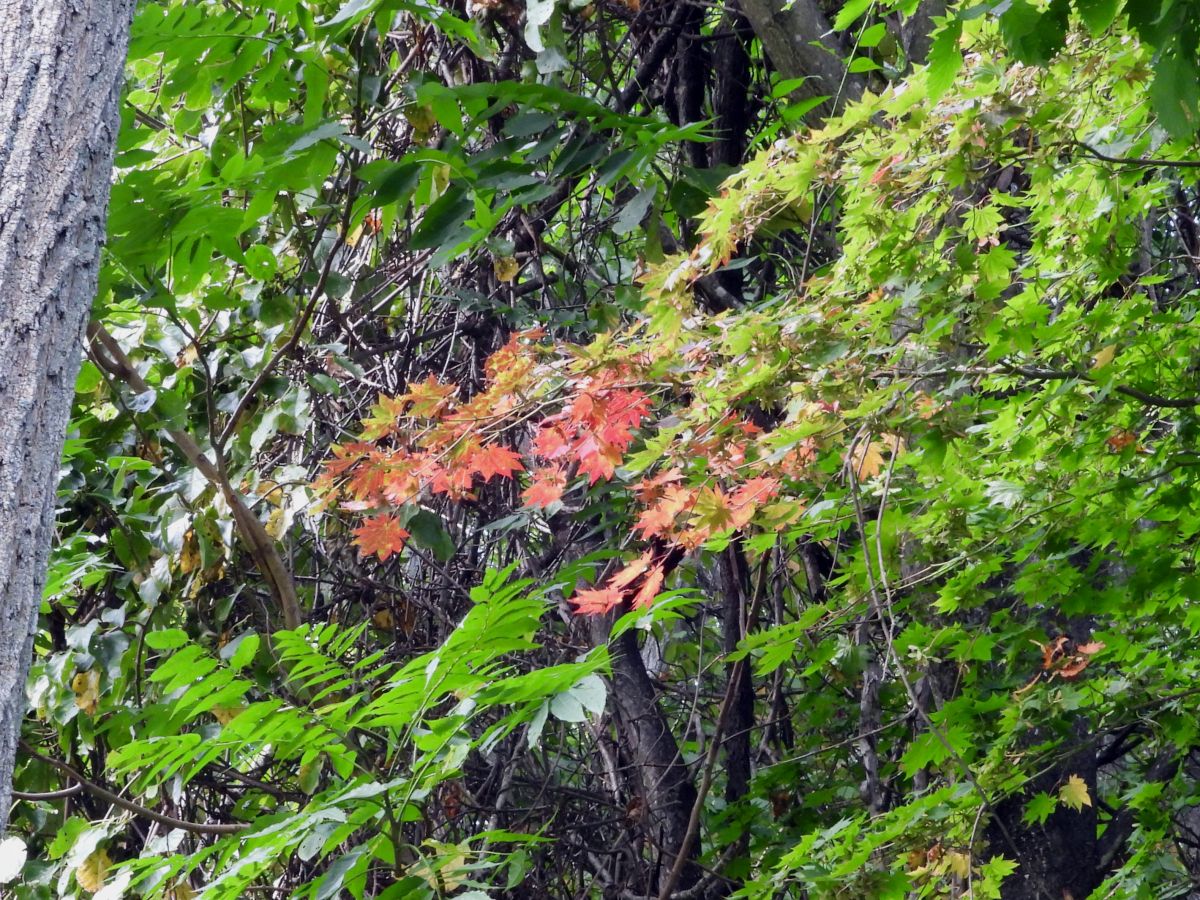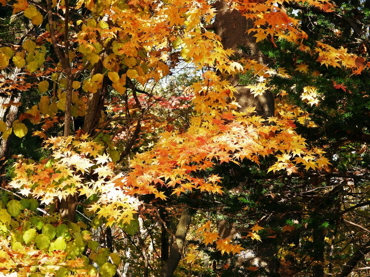 全体的な紅葉は綺麗ですが、最盛期を過ぎて少し変色をし始めた木々もあります。