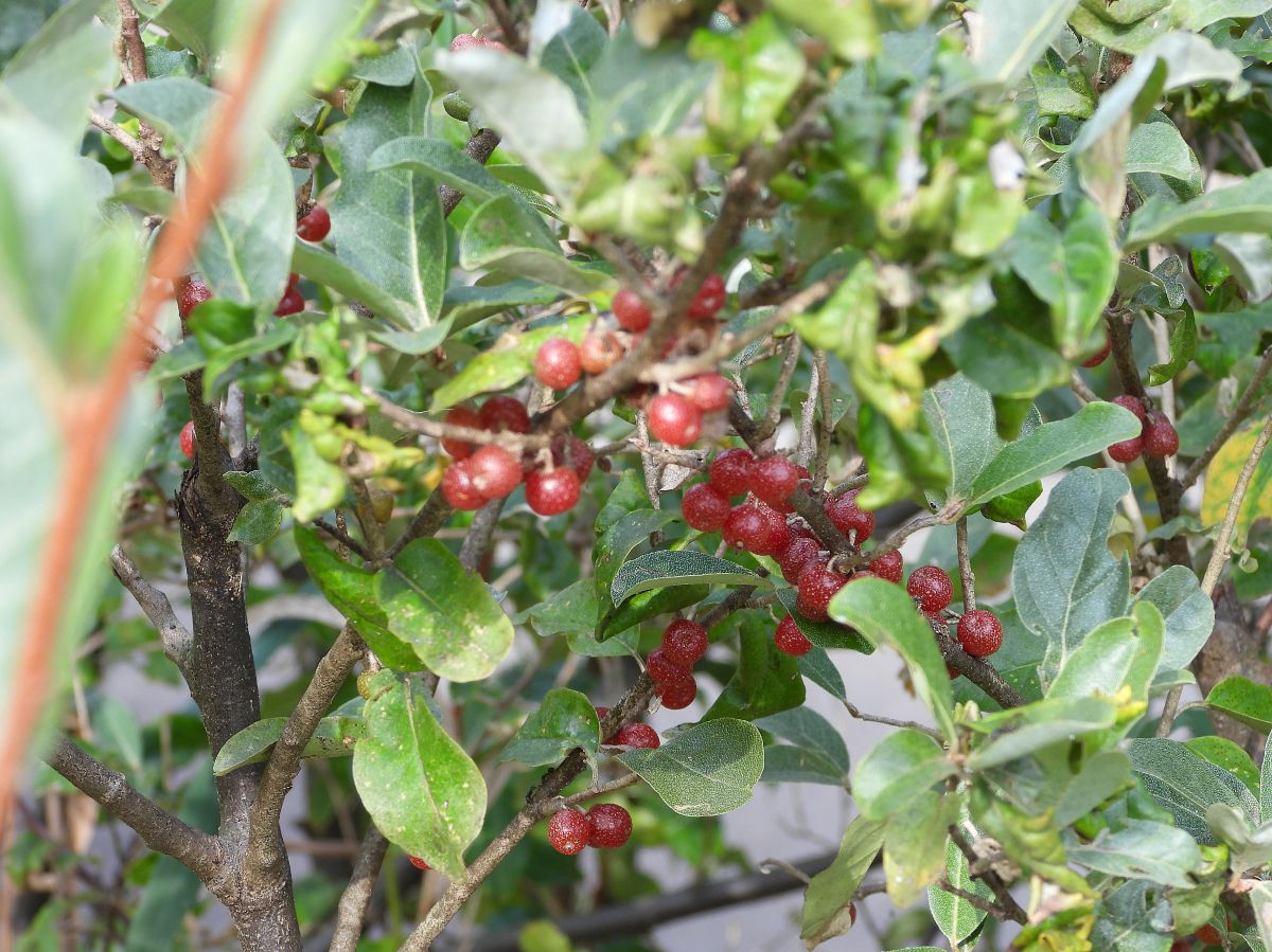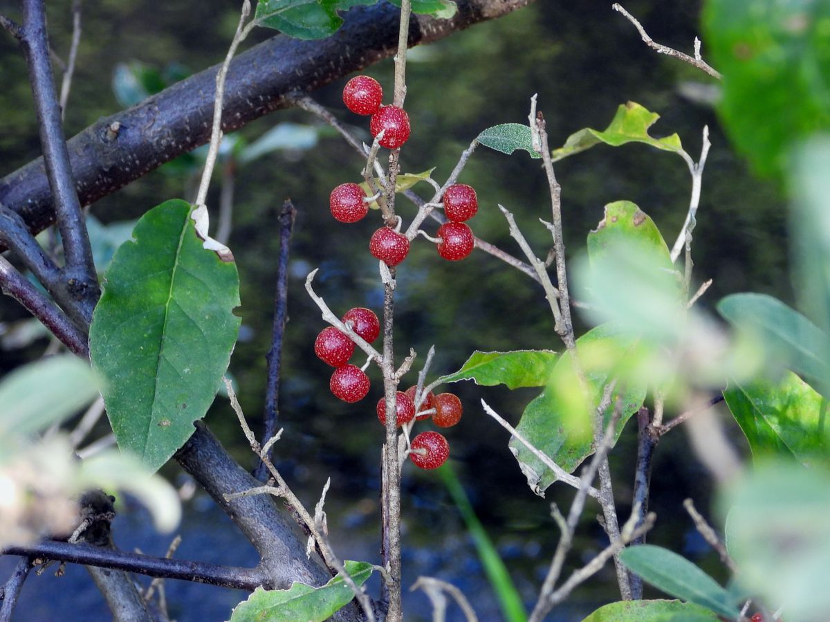 ナツグミもしばらく前から綺麗な真紅になっていますが、味は秋グミにはおよばないようです。(写真4)