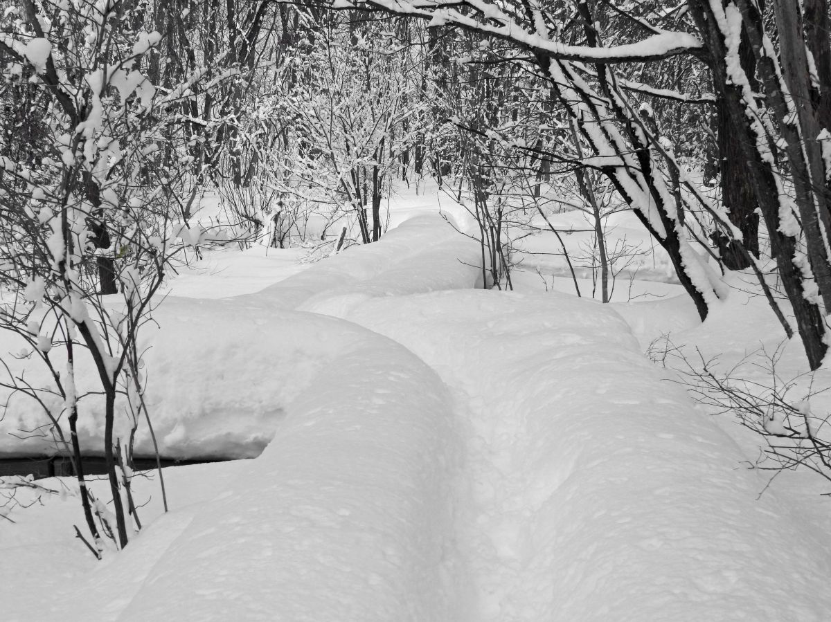 その他の部分は、まだ雪が残っており、歩きづらい状態が続いています。(写真1、下段)
