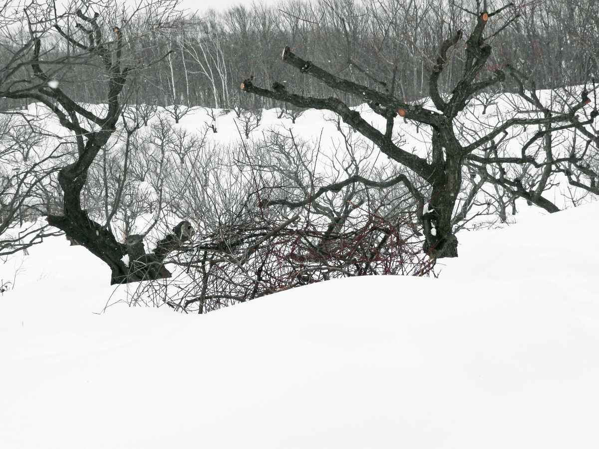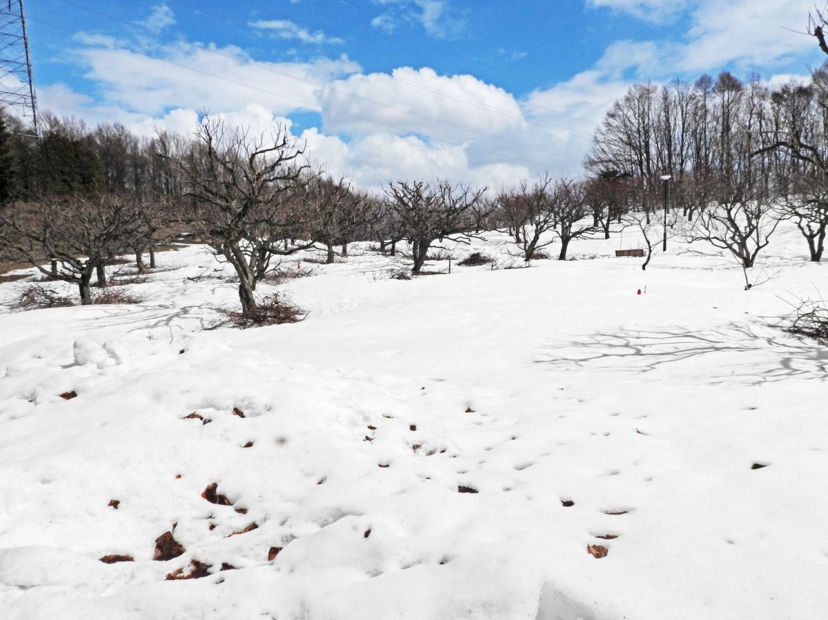 平岡公園では融雪が進んでいますが、地肌が出ているのは陽当たりの良い斜面のみです。
