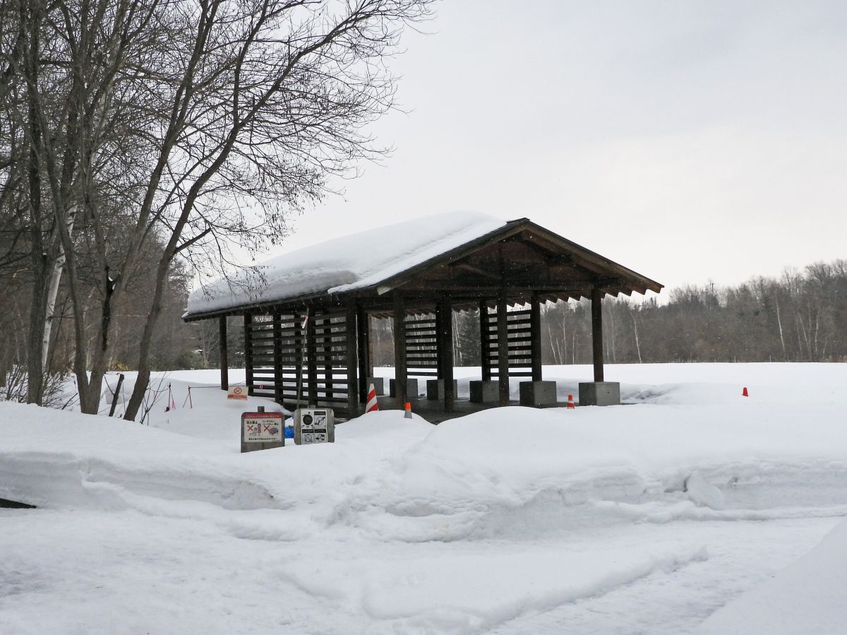 広場の東屋の屋根の積雪が劇的に減少していました。(写真2)